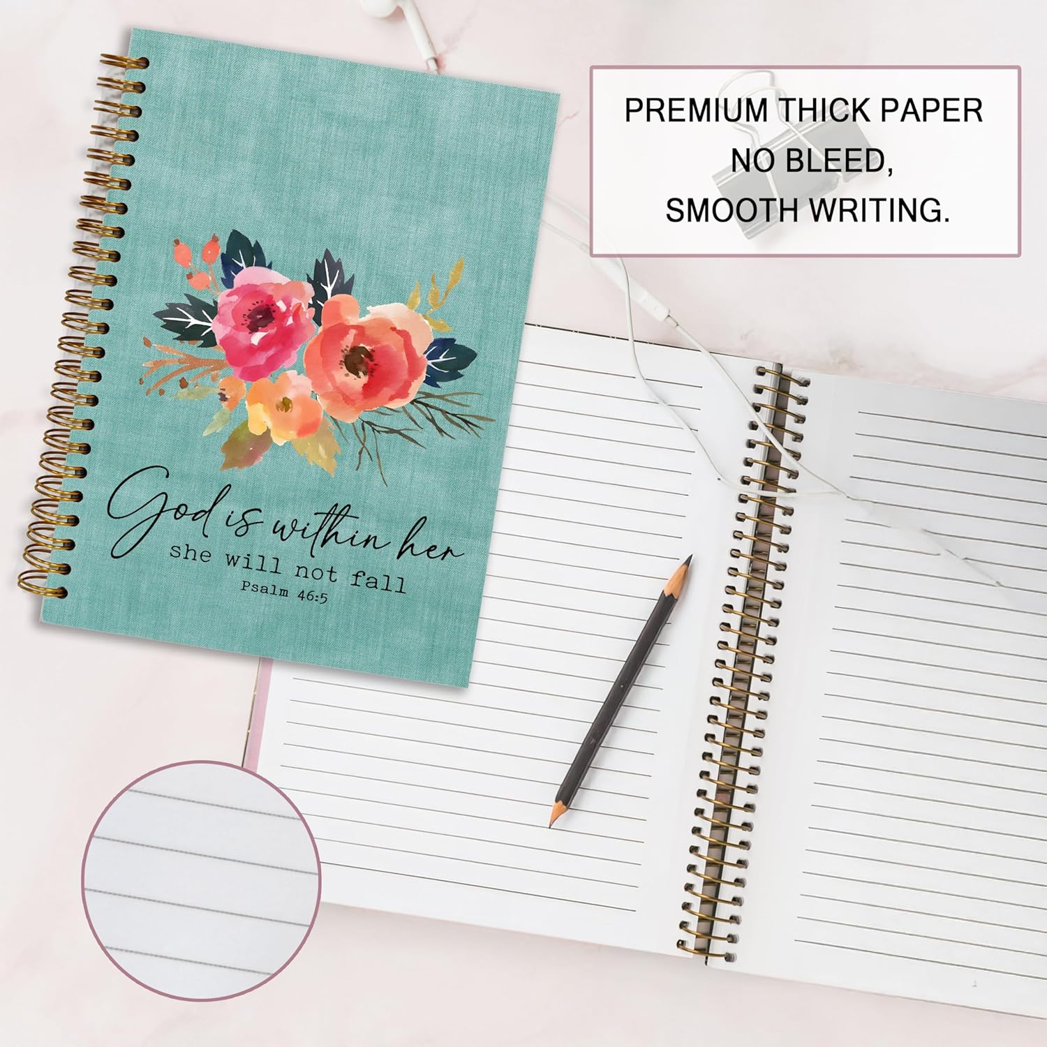 YOU FOUND ME Bible Notebook, A5 Spiral Christian Journal, Bible Verse-God is Within Her She Will Not Fall, Inspirational Notebooks for Women, Bible Study, Gift for Birthday Christmas, Office Supplies