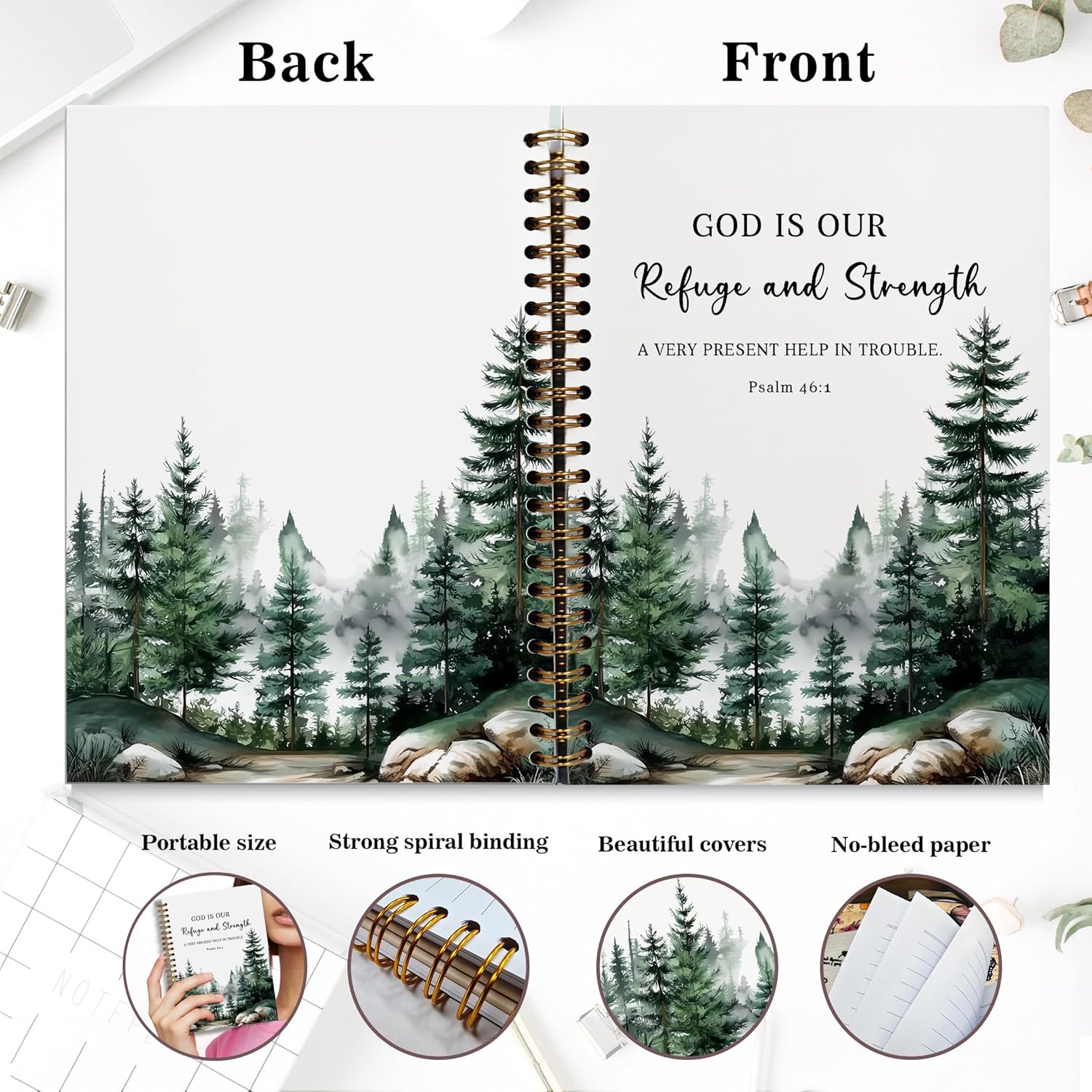 - 2.Bible Journaling Hardcover Spiral Notebook The notebook has a double spiral design, the sturdy spiral binding allows the notebook to lay flat, making it easy to write on both sides of the page. made of thick paper, prevents ink from leaking, safe, easy to write