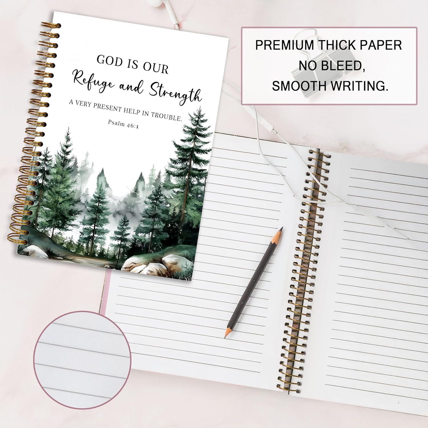 YOU FOUND ME Bible Journal, A5 Spiral Christian Bible Journal with Pink Cherry Notebook, God is Our Refuge and Strength, Bible Verse Gift for Women Birthday Christmas, Sunday School, Office Supplies