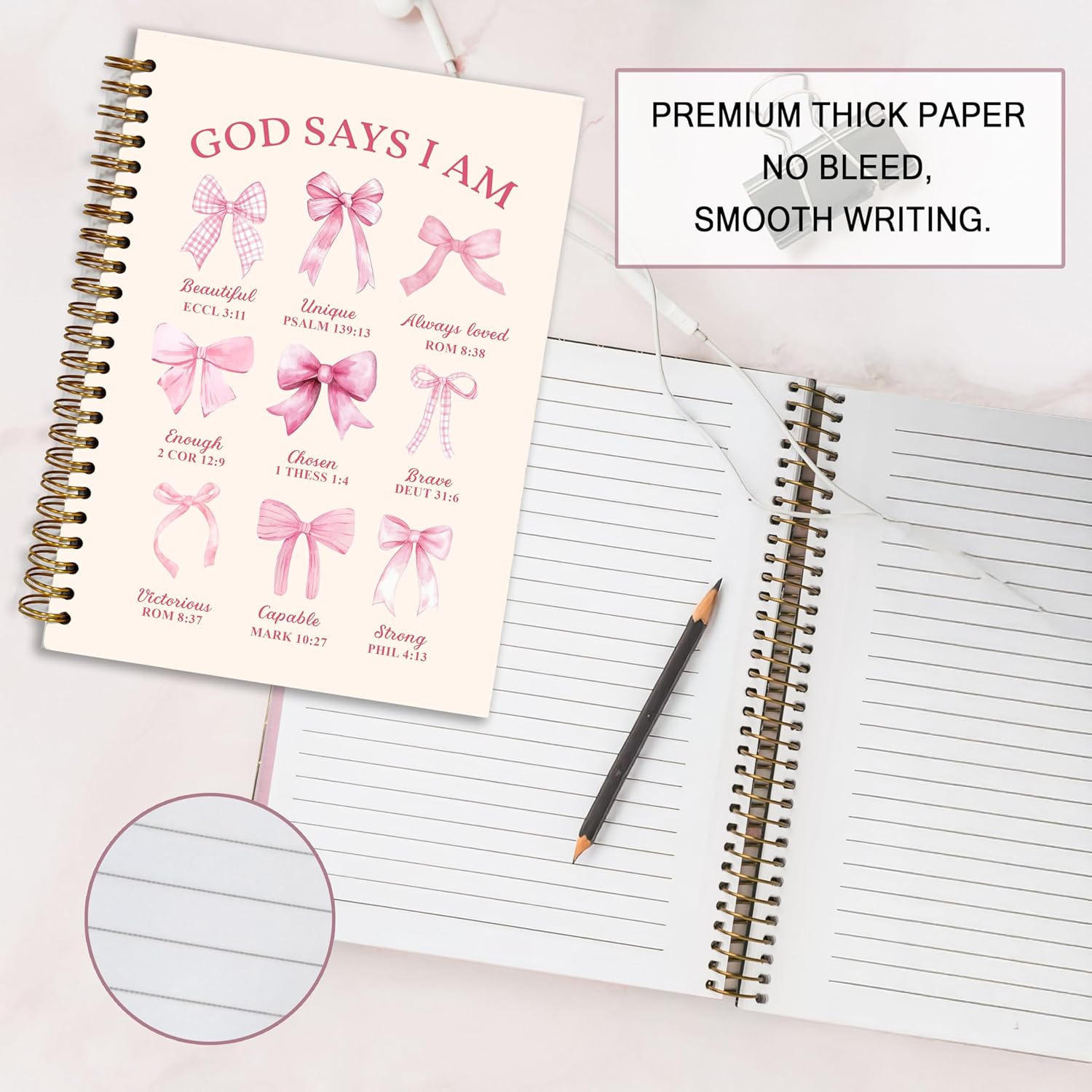 Bible Notebook, A5 Spiral Christian Journal with Floral Pink Butterfly Notebook, Bible Verse-God Says You Are, Inspirational Notebooks for Women, Bible Study, Gift for Birthday Christmas