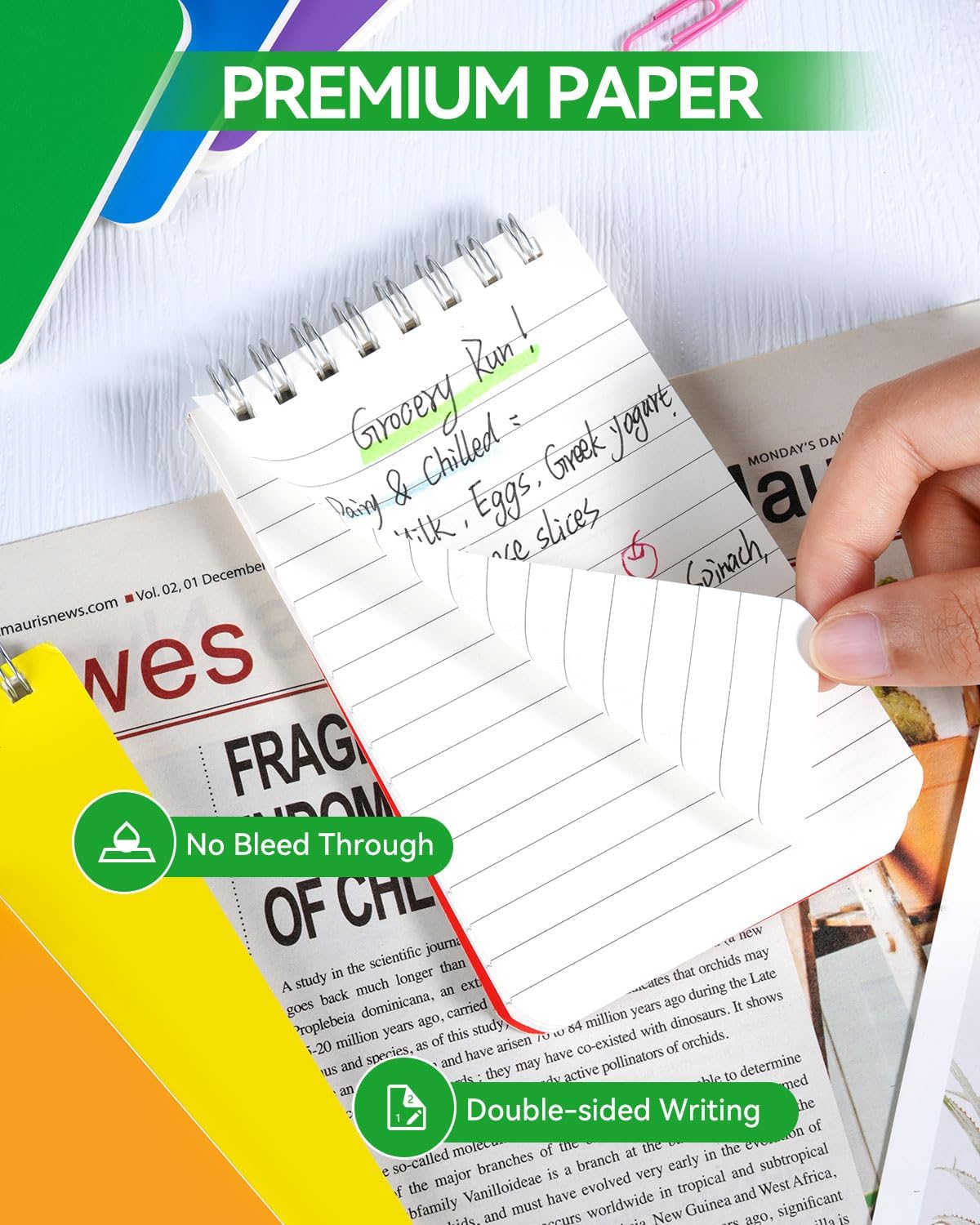 Dynta Pocket Notebook Bulk 60 Packs, 3x5 Inch Small Notepad Top Bound With Lined Pages, 10 Vibrant Colored Mini Spiral Notebooks 60Sheets/120Pages (80GSM), Memo Pads for Home, School, College, Office
