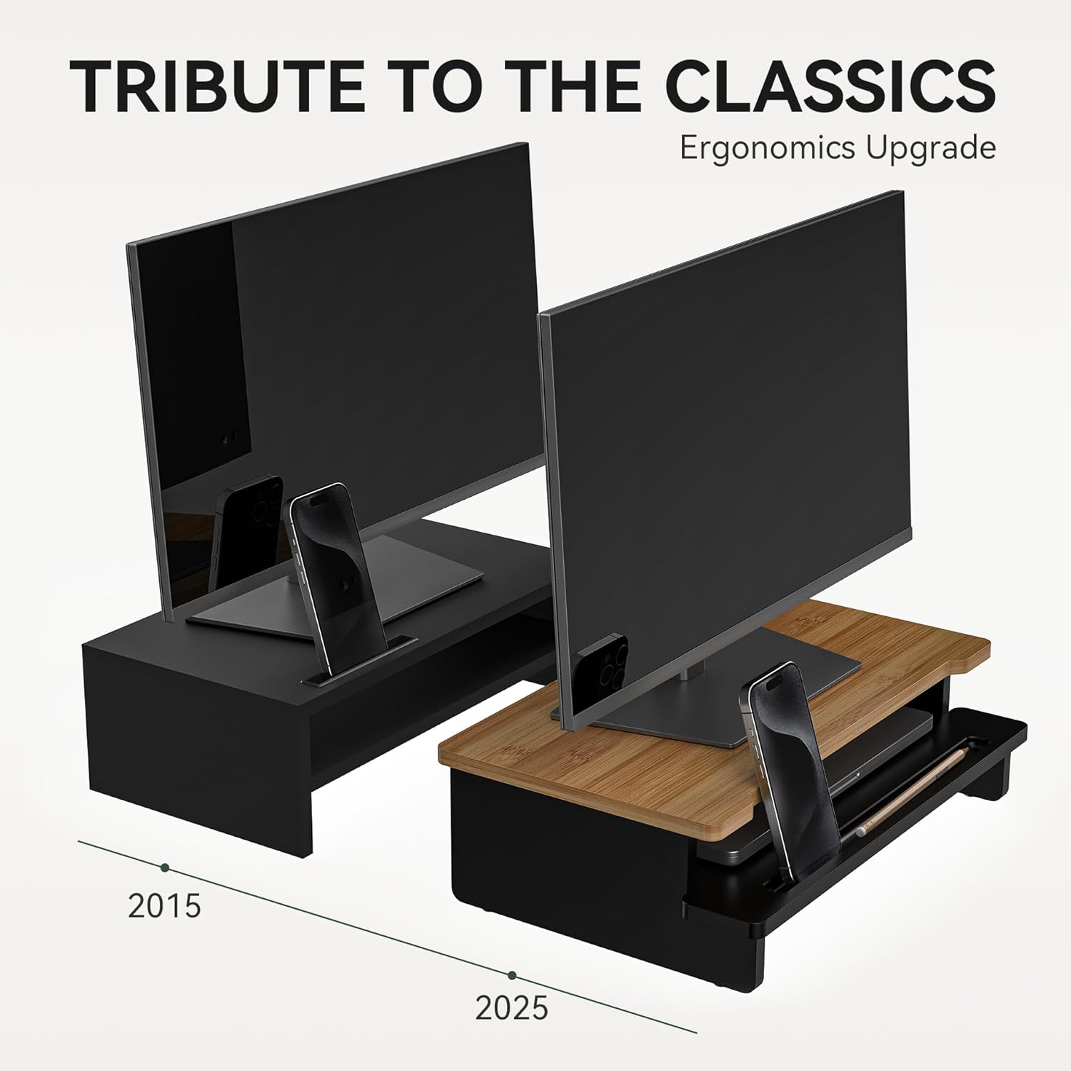 - 【Built to Last with Premium Materials】 Crafted from natural bamboo and high-density MDF panel, this monitor riser offers a sleek, modern look while supporting up to 110 lbs—ideal for monitors, all-in-one PCs, or heavy displays