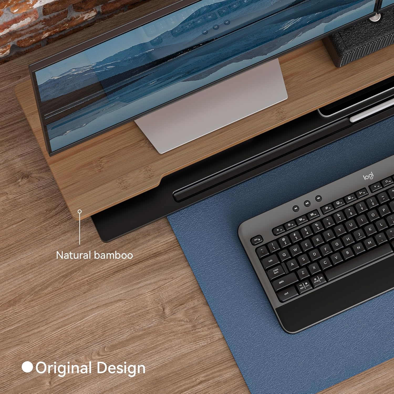 - 【Built to Last with Premium Materials】 Crafted from natural bamboo and high-density MDF panel, this monitor riser offers a sleek, modern look while supporting up to 110 lbs—ideal for dual monitors, all-in-one PCs, or heavy displays