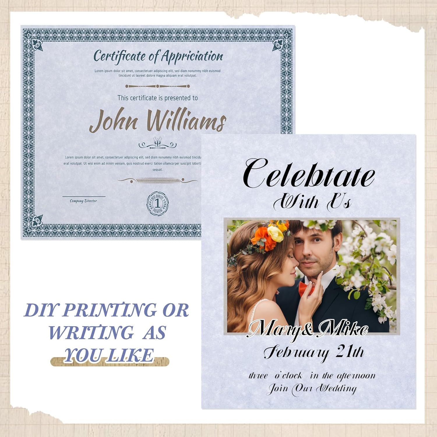 - Work As Different Things: these plain certificate papers are flexible in use, you can use them as certificate printing, wedding invitation, birthday invitation, restaurant menu, theme party decoration and so on, running smoothly in laser and inkjet printers, copiers and offset applications without jams
