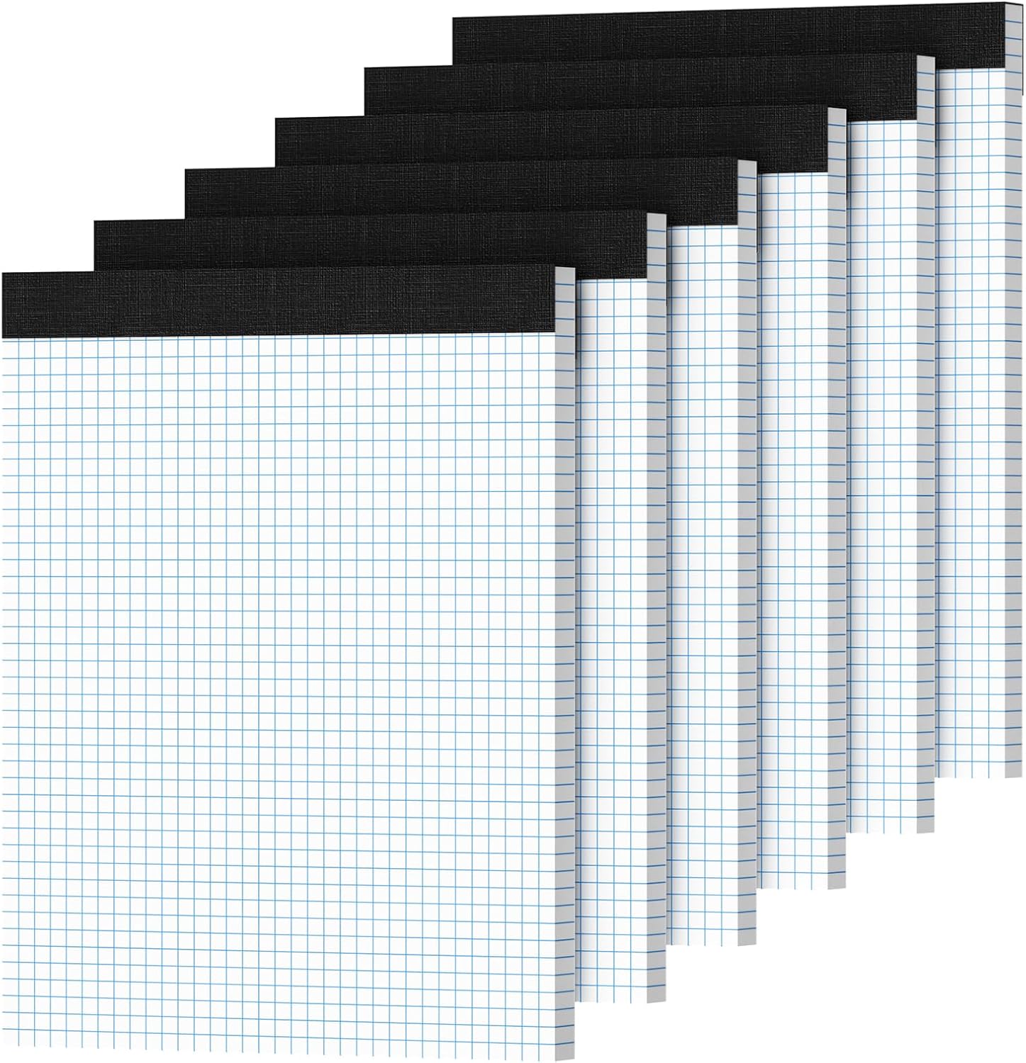 Graph Paper 8.5 X 11, 6 Pack, 4x4 Quad Ruled, Grid Paper Pad 8-1/2" X 11", Grid Pad 8.5 X 11.75, Engineering Notebook, Easy Tears Off, White 70 GSM Graft Paper