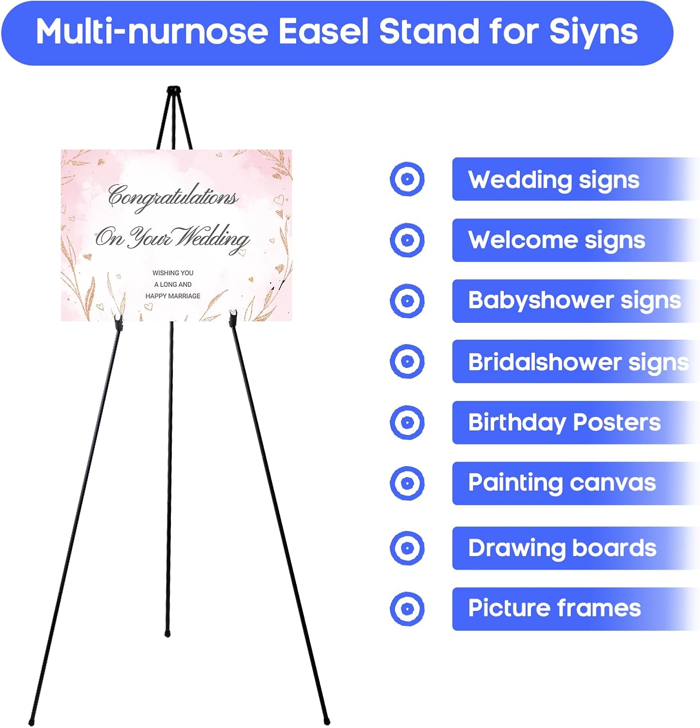 Portable Easel Stand for Posters, Lightweight Tripod Display with Collapsible Design, Sturdy Black Steel Frame, Holds Up to 5 lbs, Ideal for Events, Art & Signage. (2 Pack-Black)