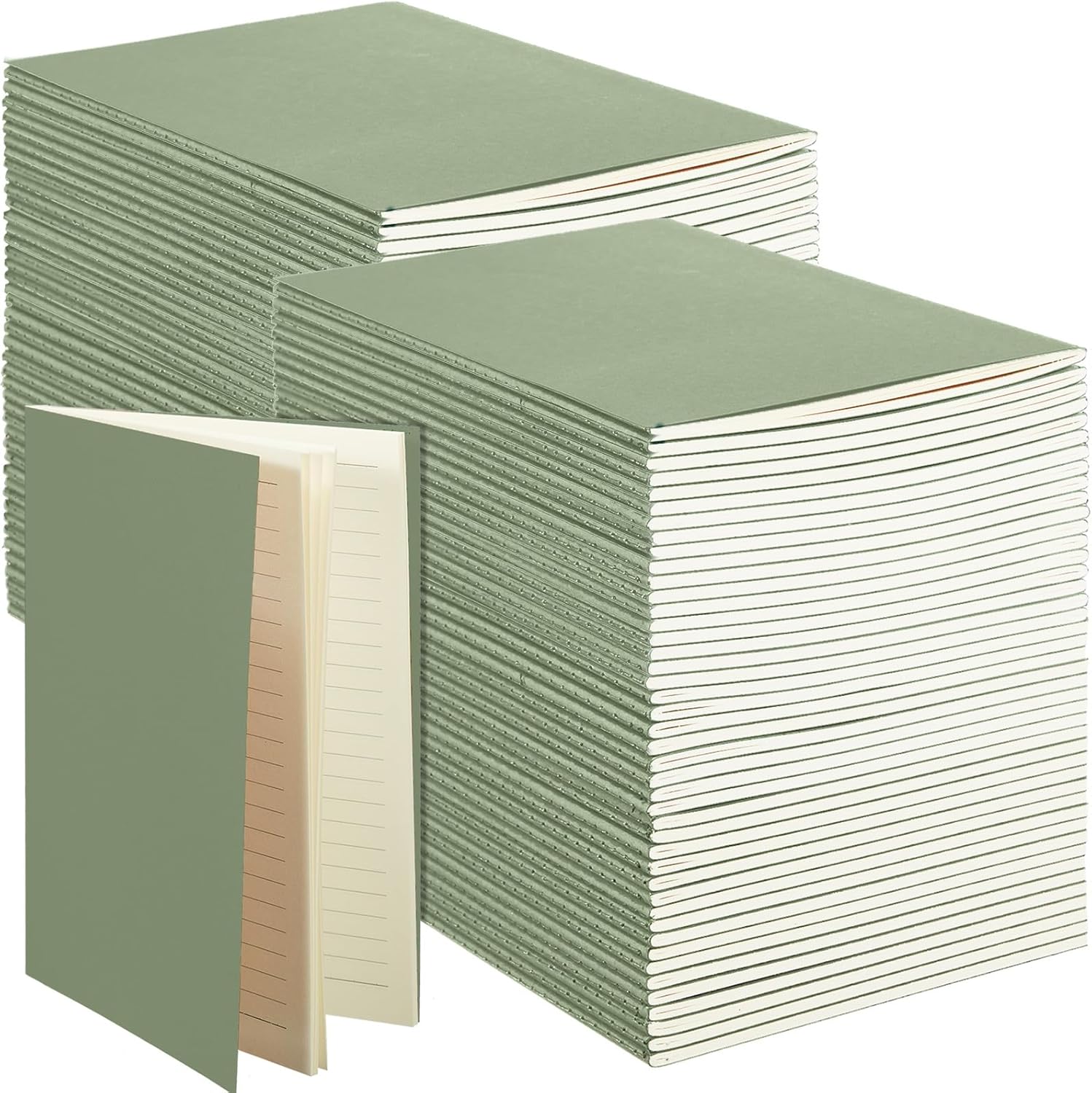 Sepamoon 150 Pack Kraft Notebook Journals 5.82 Inch x 4.13 Inch A6 Softcover Notebooks Bulk for Kids Student Writing Sketch Travel Journal Office Notepad with 48 Pages 24 Sheets, Lined(Light Green)