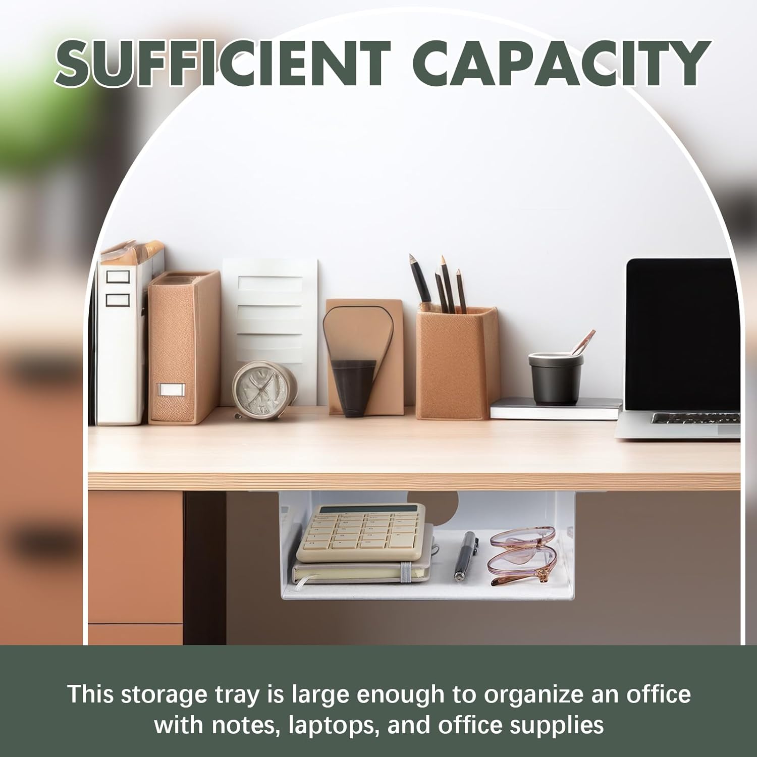 - Easy and Secure Installation: installation is a breeze with the provided strong double-sided tapes; If you prefer, you can also use screws for a more permanent installation; Forget complex or bulky hardware like those of traditional under-desk drawers