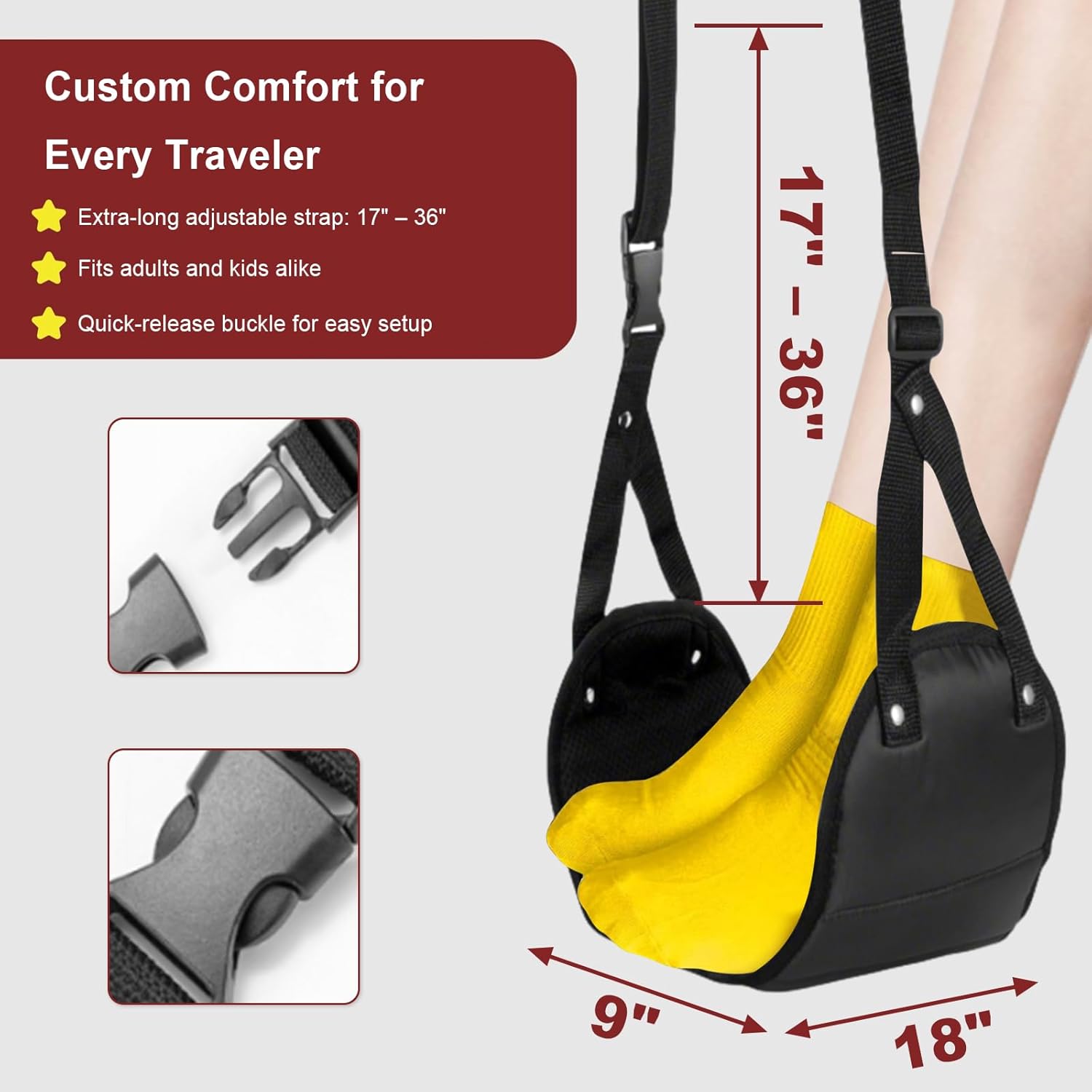- 【Suitable for All Travelers】We specially design our airplane foot hammock to accommodate travelers of all sizes, even for children. Also, It's so compatible, that you can use your foot sling for airplane travel on planes and trains, you You can even hang it on the car. No matter your height, we guarantee your comfort