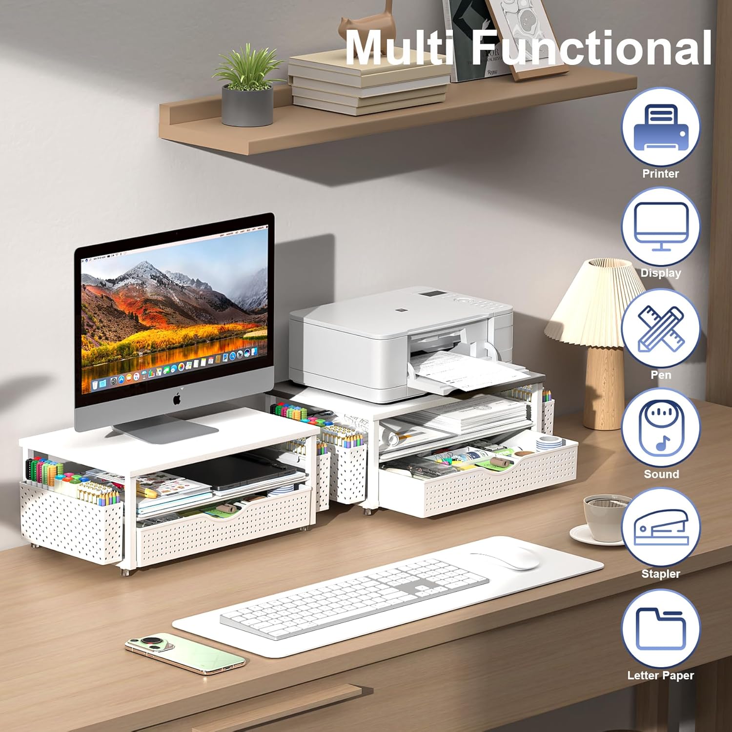 - Multi-purpose organizer: This monitor riser is a great addition to the home office space. It is well-made and easy to assemble. It can be used as a computer stand, laptop riser, printer stand, PC tower stand, or even a desktop organizer