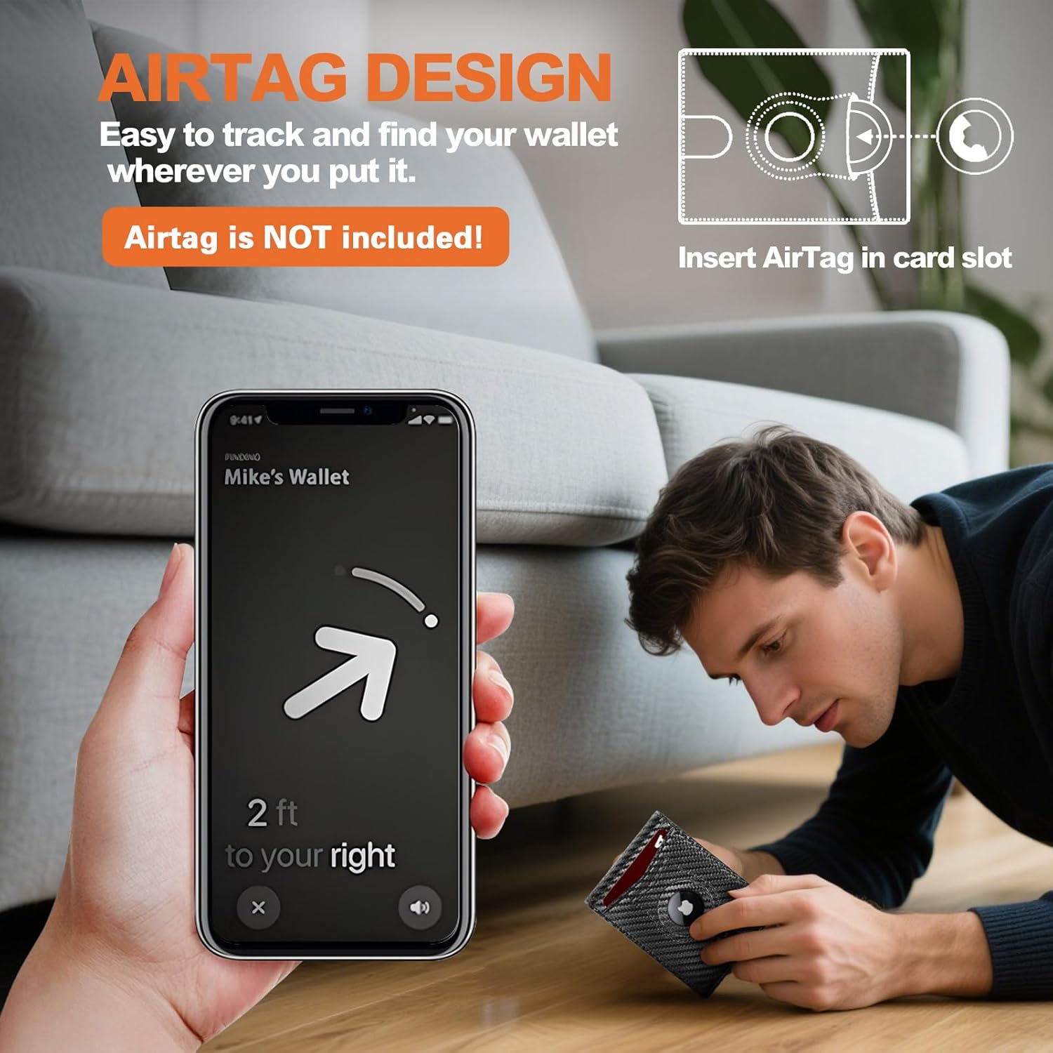 - Anti-loss design:This thin wallet for men built-in airtag pocket holder,perfectly combines wallet and airtag to ensure you never lose your wallet again. Misplaced or lost your airtag wallet men? In the Find My app, you can track your wallet for men and see the last used location of your airtag wallet and device.This wallet with airtag holder,airtag not included