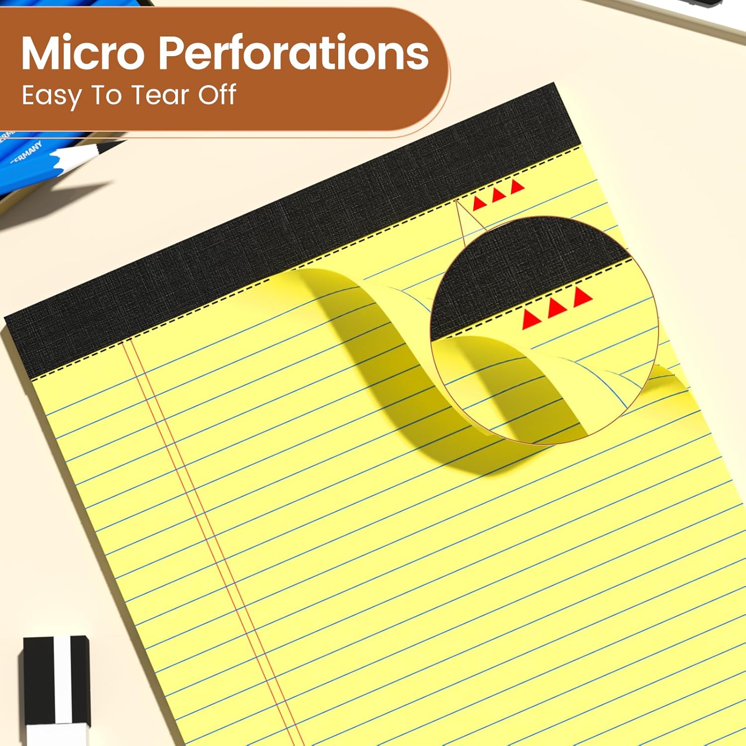 Legal Pads 8.5 X11, Narrow Ruled Notepads, 12 Pack, 50 Sheet/Pad, Yellow Legal Pads, Tear Off Notepad, Perforated Writing Pad, Notebook Paper College Ruled, Notepads for Office Home School, Notepad