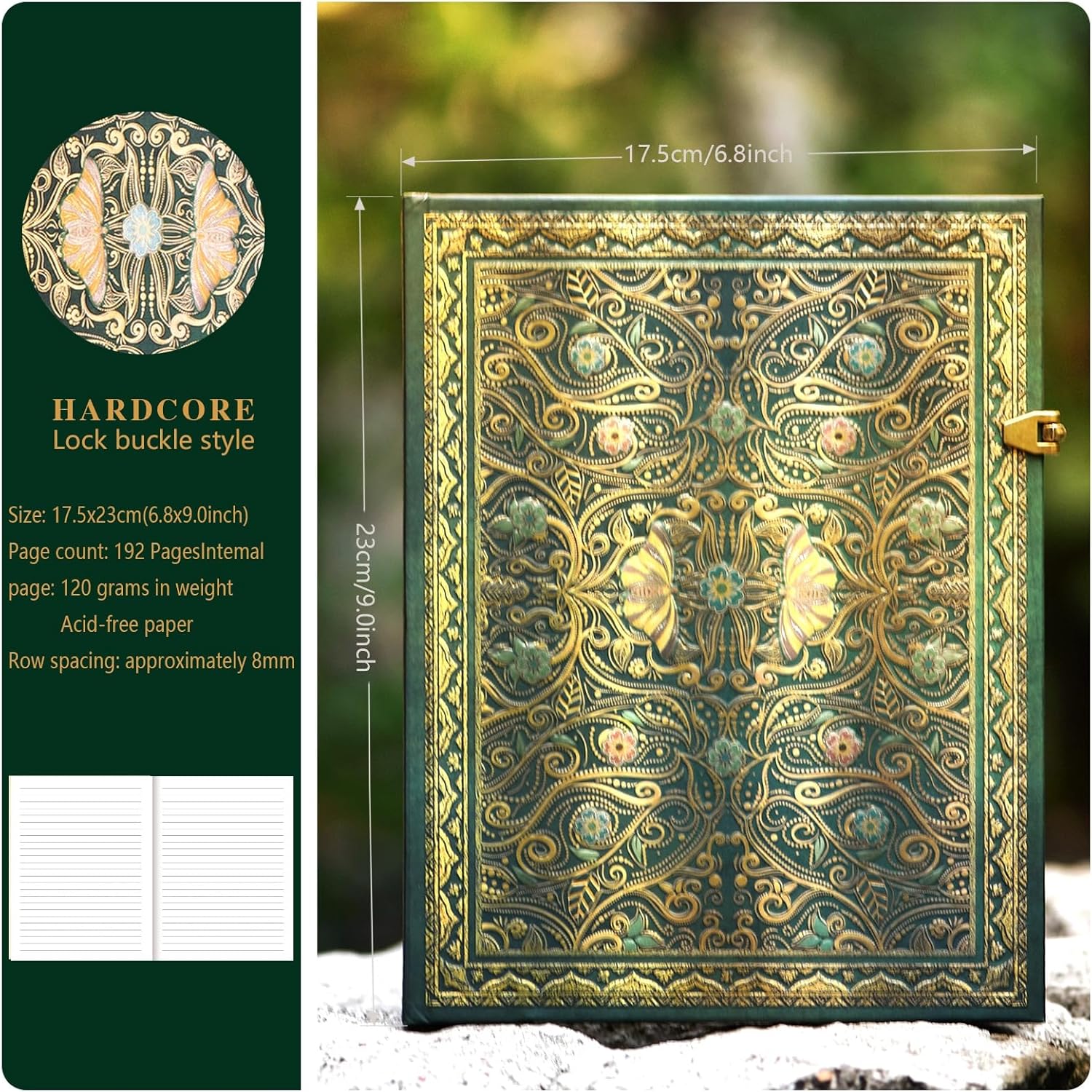 - Exquisite Accessories: Includes: Vintage 3D Green Dancing Butterfly Flower hardcover journal with 192 lined pages (96 sheets), concealed keepsake pocket for photos/stamps, writing pen, vintage-style stamp stickers - presented in 6.8"x9" format.