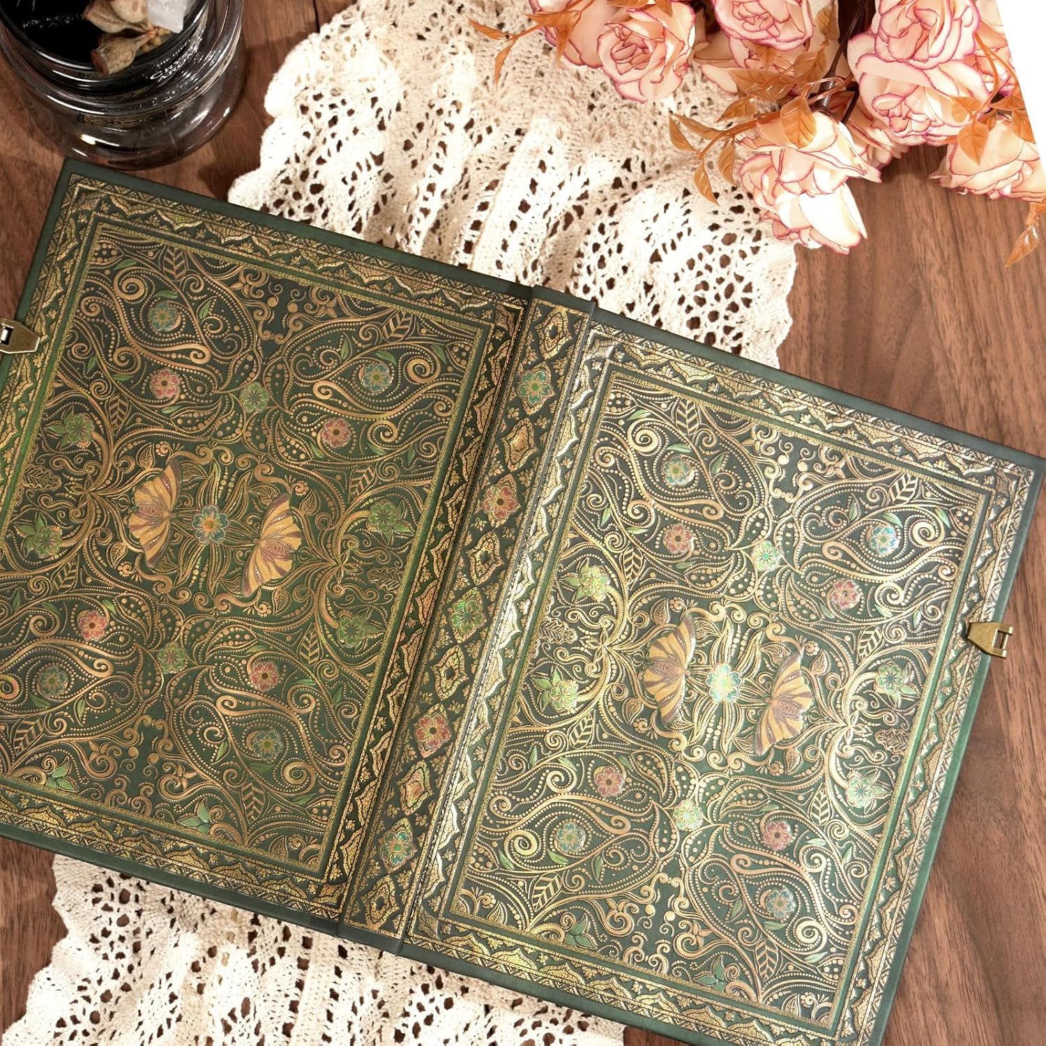 - Cover design: Features intricate golden vines, blossoms, and dancing butterflies brought to life through 3D embossed hot stamping - delivering a tactile dimensional feel and opulent texture. Hand-bound construction with side-printed metal buckles ensures heirloom durability and museum-quality elegance.