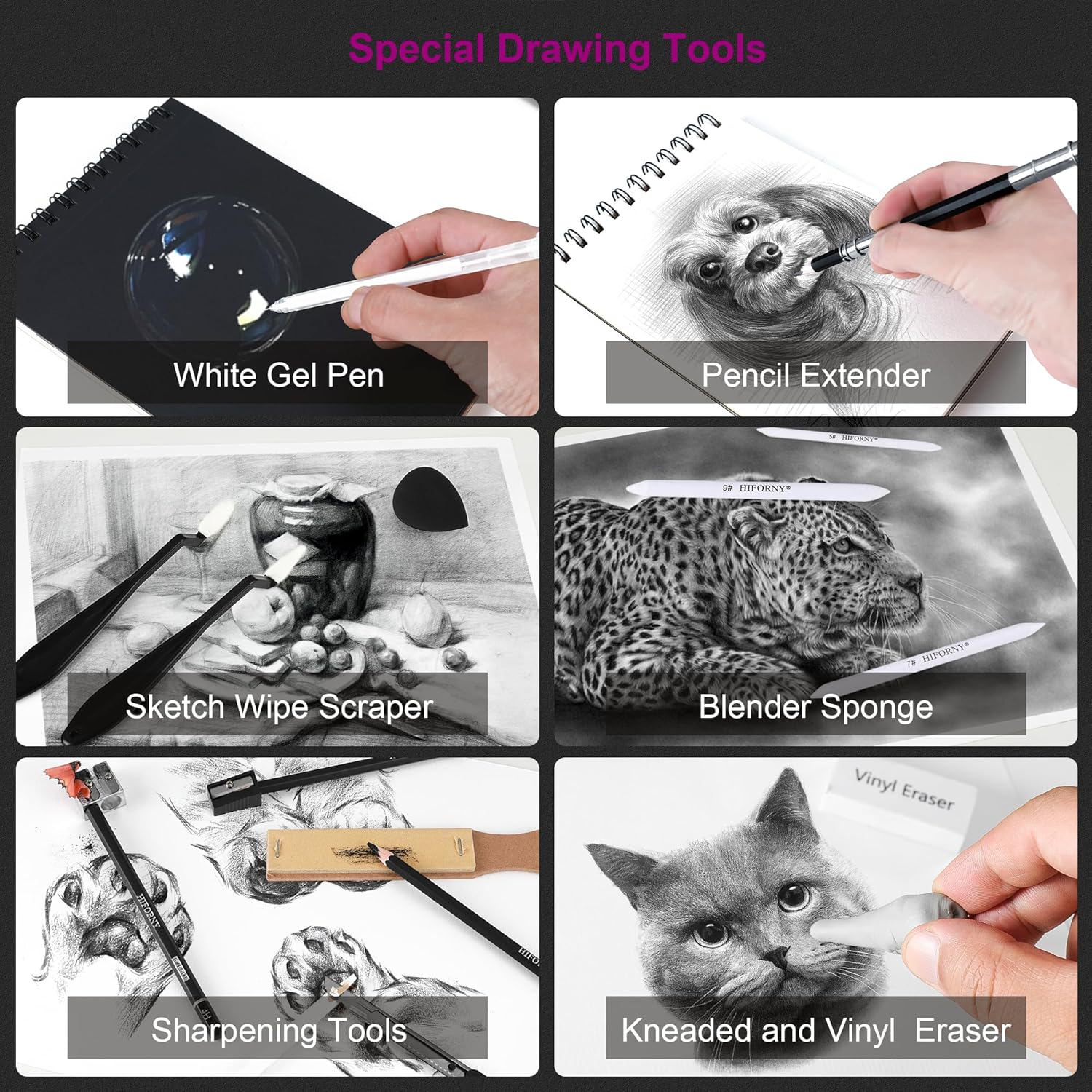 HIFORNY 76 PCS Drawing Set Sketching Kit,Sketch Pencils Art Supplies with Graphite,Charcoal,Blending Tools & Accessories,Portable Zippered Travel Case for Artists & Beginners
