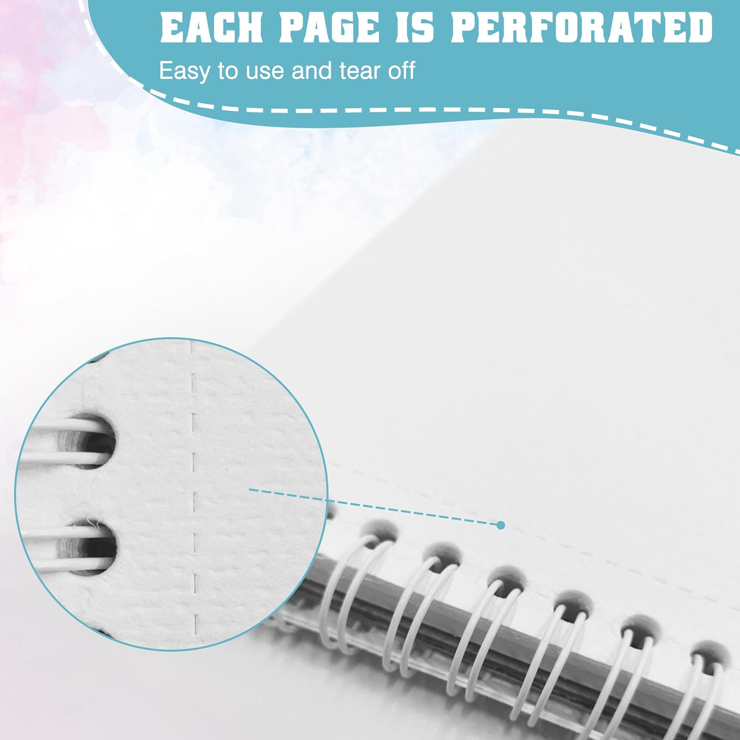- Micro-Perforated & True-Size Watercolor Paper – Features 24 premium heavyweight sheets (140lb/300gsm) with fine perforations for clean, effortless removal. Includes a 0.59-inch margin beside the spiral for noting brush types, colors, and dates, making it perfect for professional artists documenting work or enthusiasts preserving creative moments.