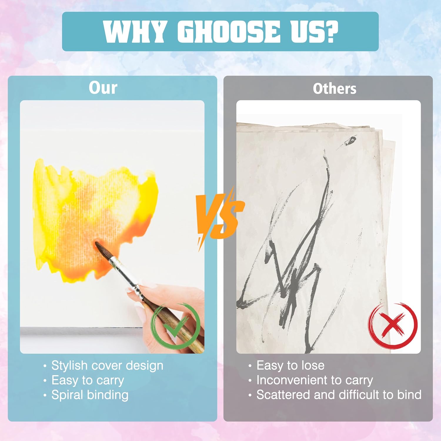 - 2 Portable-to-Studio Sizes – Choose from 9x12 (large studio), 7x10 (class projects), Each watercolor paper size adapts to detailed paintings, daily sketching, or outdoor plein air, ensuring a perfect fit for every artistic endeavor.