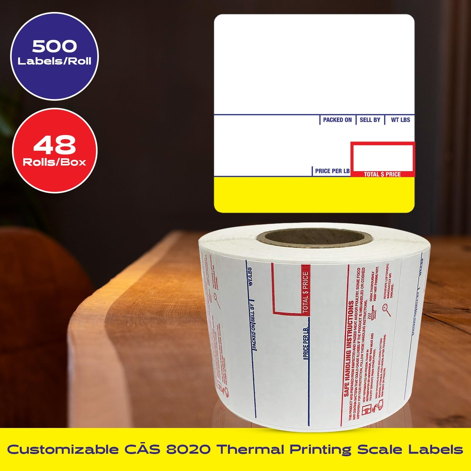 CEPRICO - Customizable CĀS Scale Labels - 48 Rolls of Thermal Printing Scale Labels – Compatible with CĀS LST-8020 | UPC Ingredient | Ideal for Supermarkets, Retailers and Grocery Stores