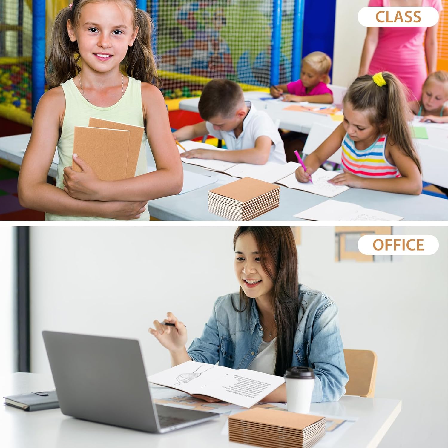- Product Size: each mini notebooks measures 4.25 x 5.5 inches and each has 26 sheets of paper in total; You will receive 75 packs of kraft notebooks in this package, enough for you to use for a long time, there are 24 sheets inner pages, proper size for you; Mini notebooks are convenient to carry, can easily fit into your backpack, schoolbag, pocket or wherever you can fit them