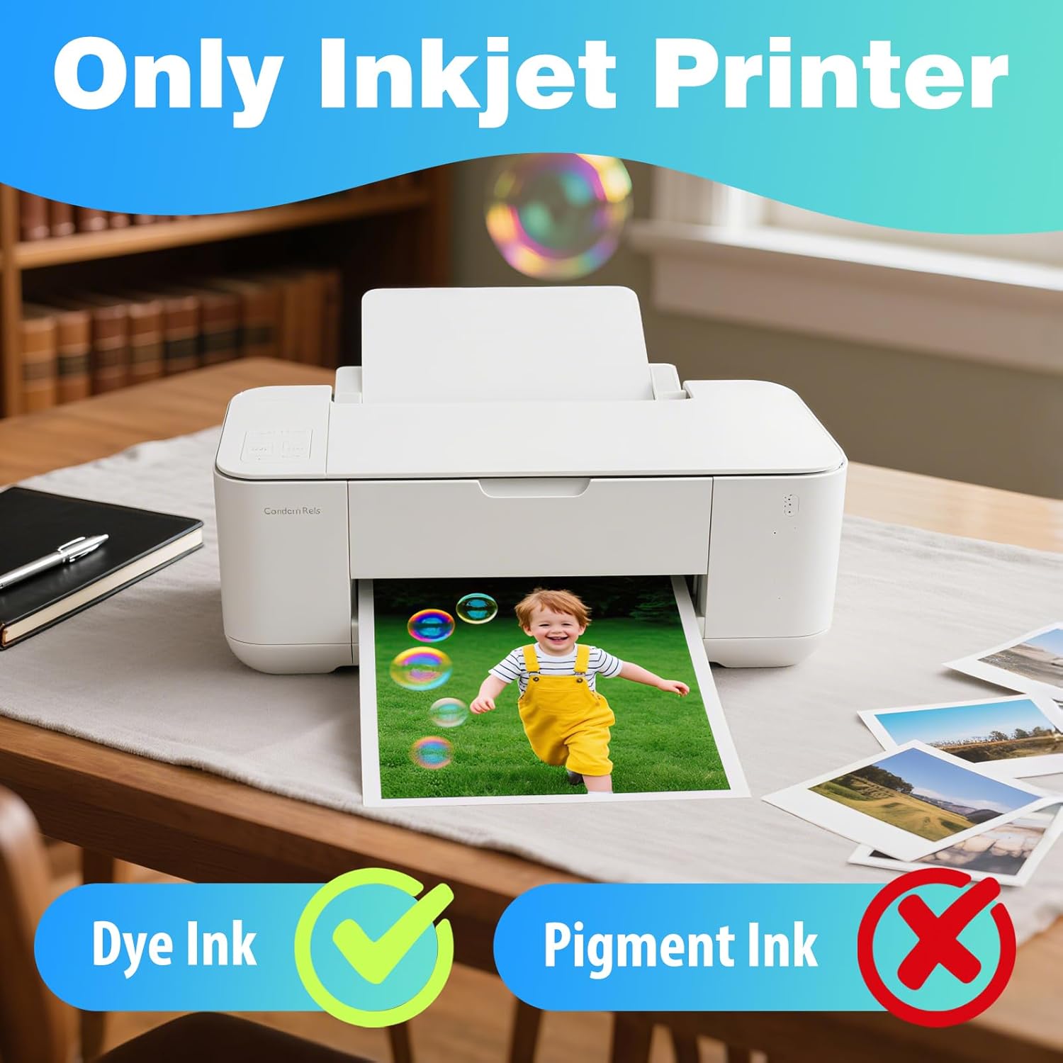 - INKJET PRINTER ONLY: White glossy finish, Double sided glossy brochure inkjet photo paper, 200 sheets a pack , No smudging, No smearing, ONLY compatible with Inkjet Printer and Dye Ink