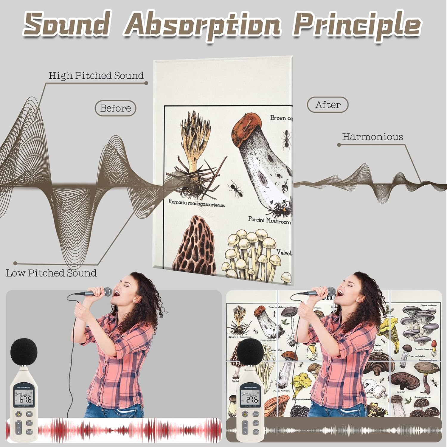 - Perfect Wall Decoration: This mushroom-patterned sound proof panels for walls combine sound insulation and decoration. Various types of mushrooms are carefully designed on the sound insulation board, making it very suitable for mushroom lovers or outdoor enthusiasts. It can add a natural plant and rural feel to your room