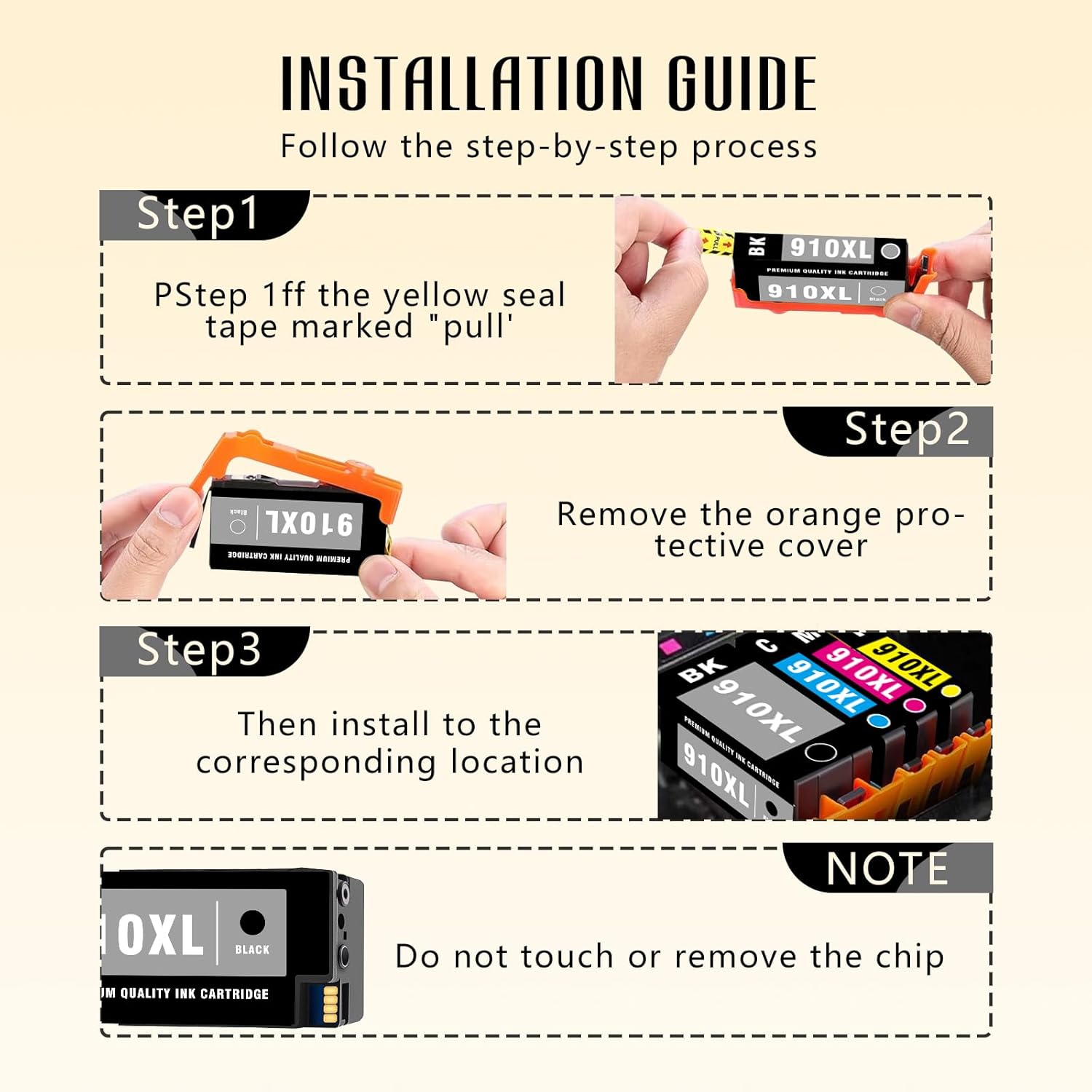 - Latest chip version:Replacement for hp 910xl ink cartridges combo pack equipped with the latest chip version to ensure full working compatibility with your printer