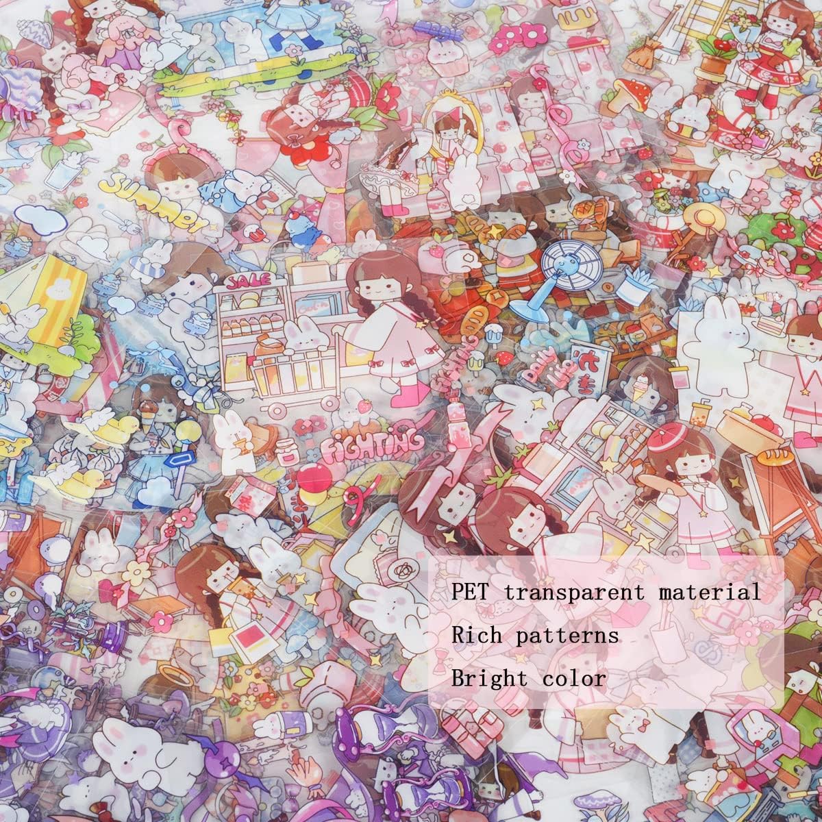 Kawaii Cute Cartoon Girl Stickers - 100 Sheets PET Aesthetics Decoration Journals Supplies Sticker for Dairy Bullet Album Journal Scrapbooking Calendars Phone Case Laptop DIY Crafts