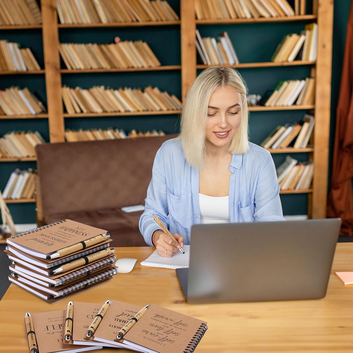 - Package Include: you will receive 12 sets of motivational journals and pens featuring positive affirmation, includes 12 distinct affirmation journal and 12 bamboo pens, totaling 24 items for use and gift supplies