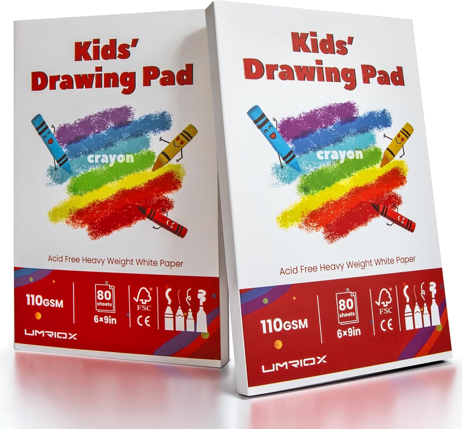 Umriox Drawing Pad for Kids, 6" x 9" Sketch Book, 2-Pack Sketch Pad (80 Sheets Each), 110gsm Acid-Free Drawing Paper, Glue-Bound Art Sketchbook for Kids' Classroom, Travel & School Art Supplies