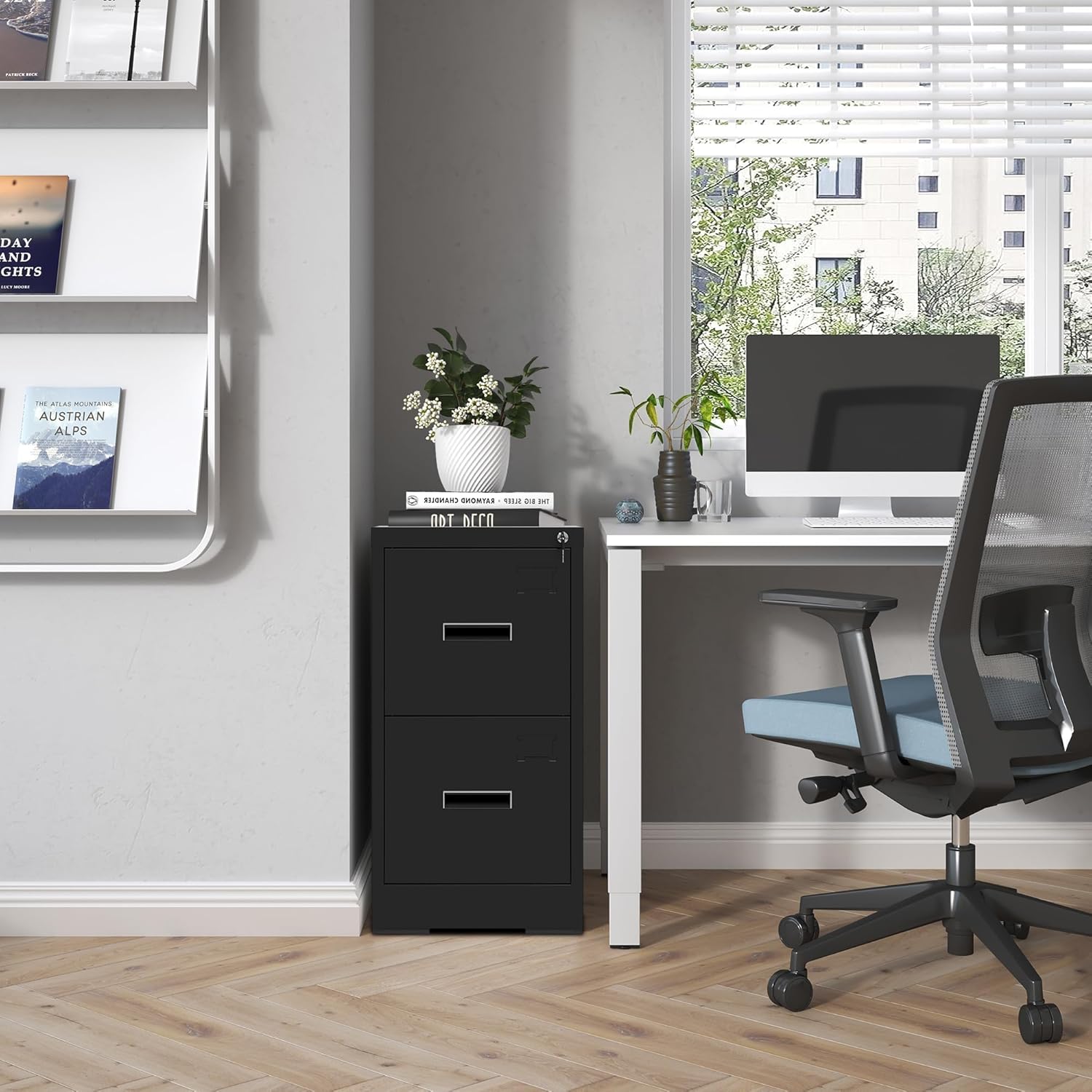 2 Drawer File Cabinet with Lock and Card Slot, Metal Vertical Filing Cabinets for Home Office, Steel Storage Cabinet for Hanging Legal/Letter Size Files, Assembly Required (Black)