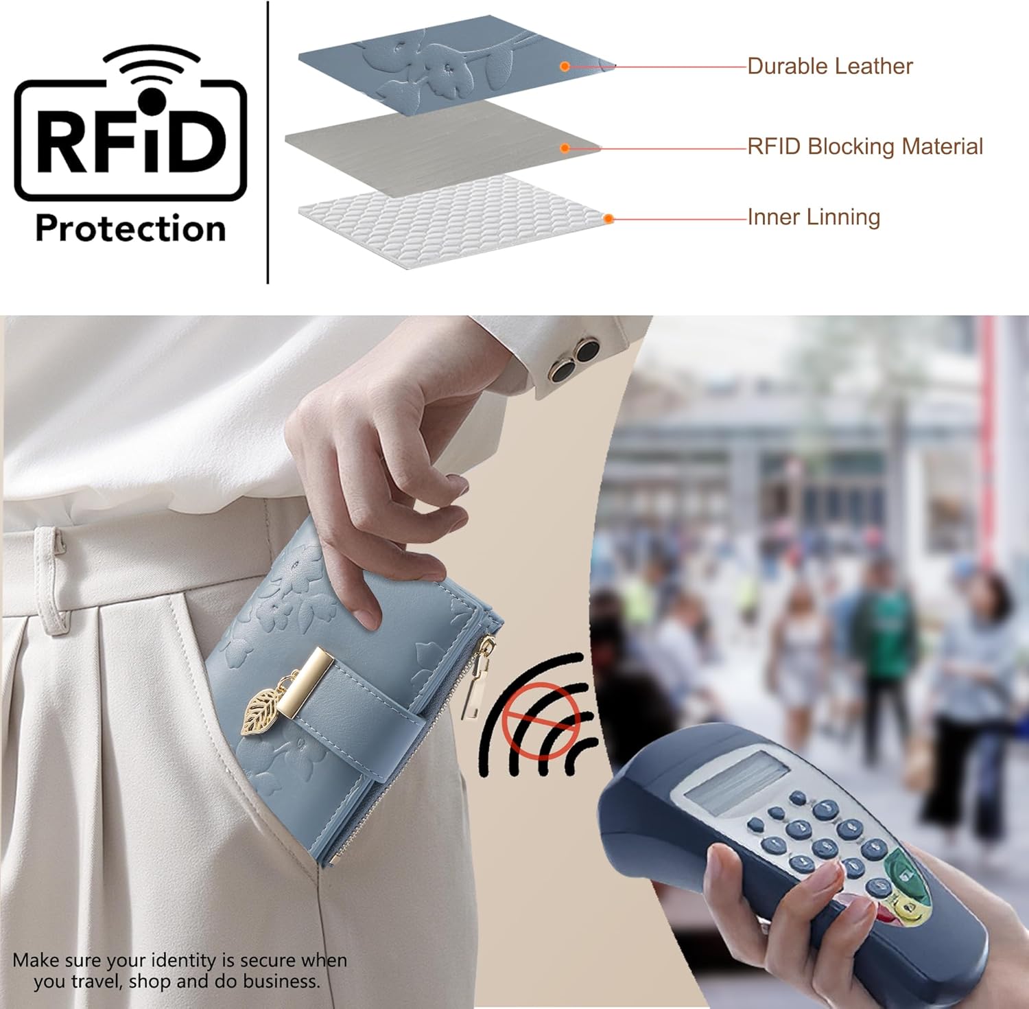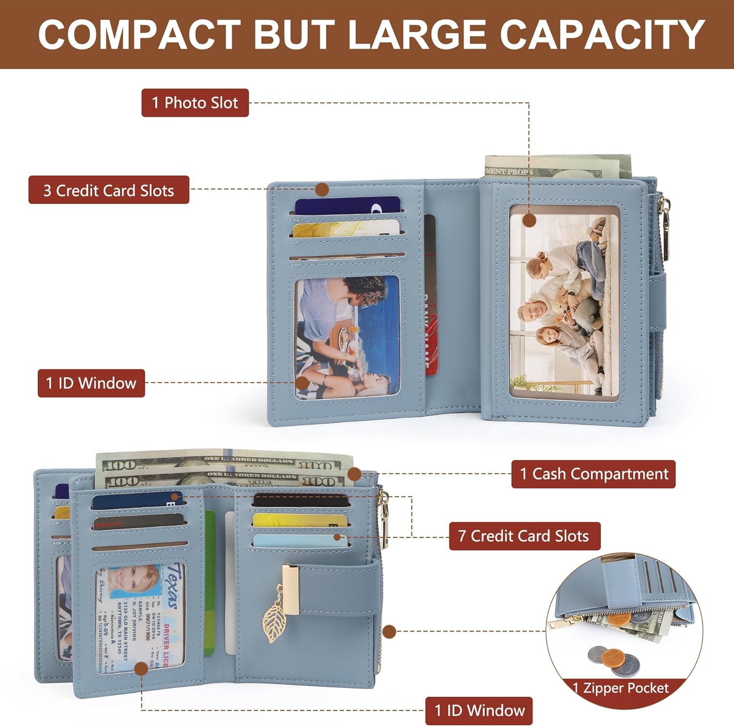 - Small Compact Women's Wallet: With 10 RFID-block credit card slots, 2 ID windows, 1 zipper coin pocket, 1 clear window picture slot and 1 currency slot, this small wallet for women can meet all your daily demands.