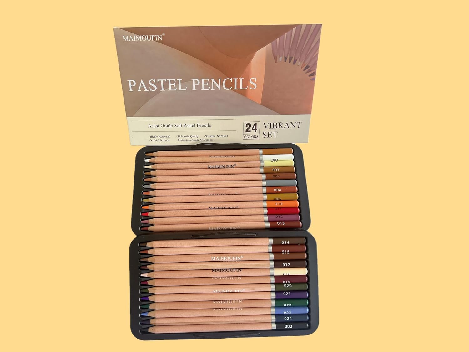 - 24 Premium Artist-Grade Pastels for Professionals & Enthusiasts: Designed for serious creators, this 24-color set features premium lightfast pigments trusted by artists, illustrators, and hobbyists. Ideal for portraits, landscapes, and mixed-media projects, these pencils meet the demands of studio work and everyday creativity.