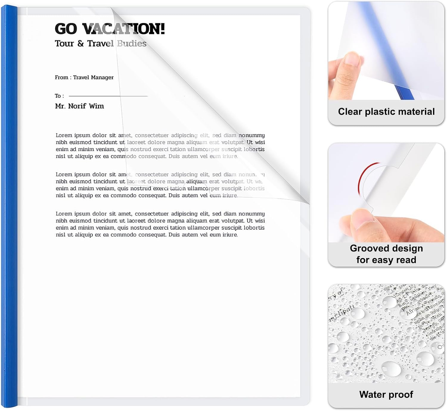 - Package Contain: Set of 40 clear report covers with sliding bars in 5 assorted colors, red, blue, yellow, green, white, to help you sort documents more orderly, designed classic and professional appearance