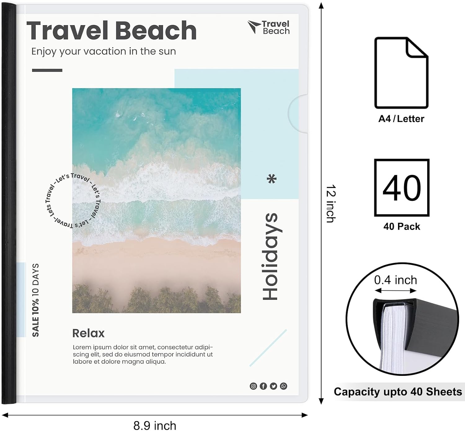 - 40 Sheets Capacity Paper Binder: 8.9 in width and 12 in length, suitable for both A4 size and Letter size paper, can hold more than 40 pieces of papers, exquisite and sturdy