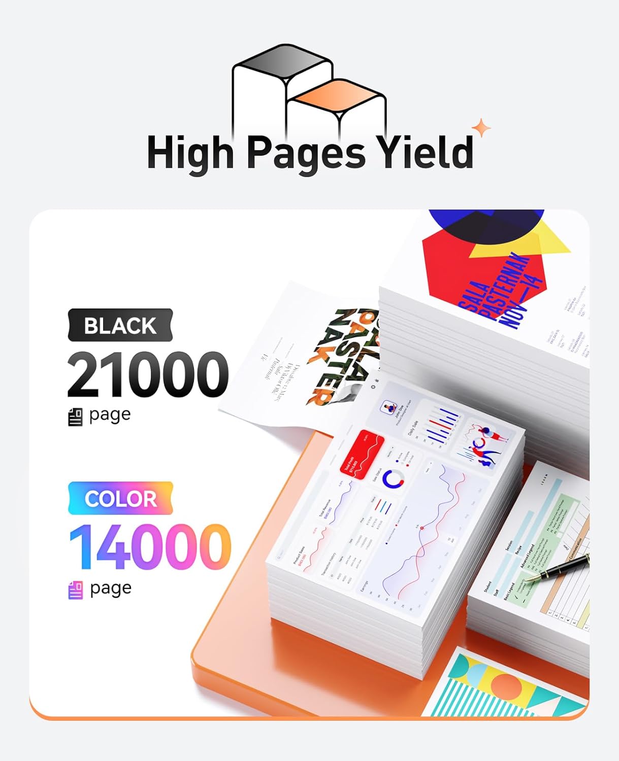 - Yield & Version: W9240MC Black Toner Cartridge can print 21,000 pages, and each W9241MC W9242MC W9243MC color Toner Cartridge can print 14,000 pages. (A4, 5% Coverage), High Yield Version W9240MC toner cartridges.