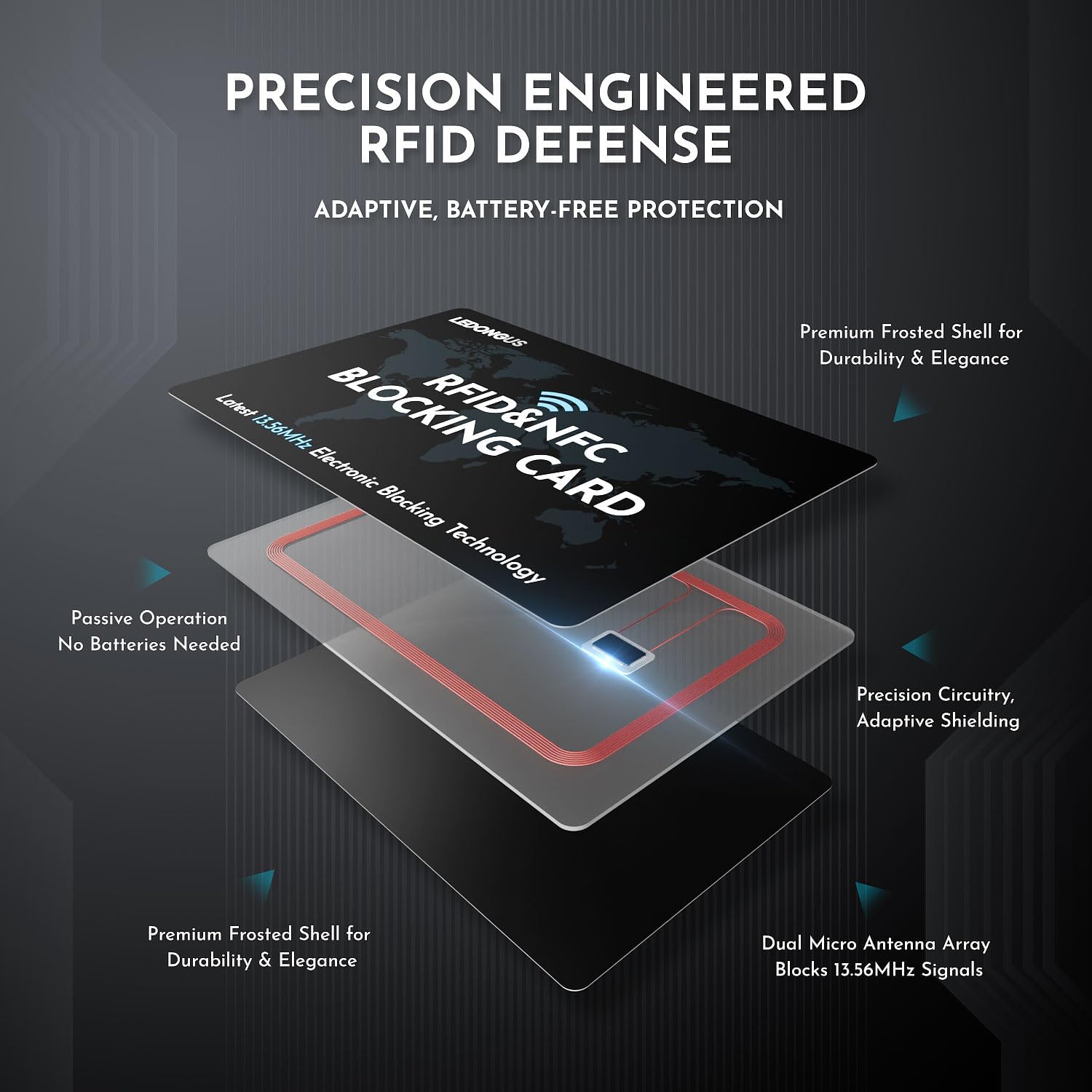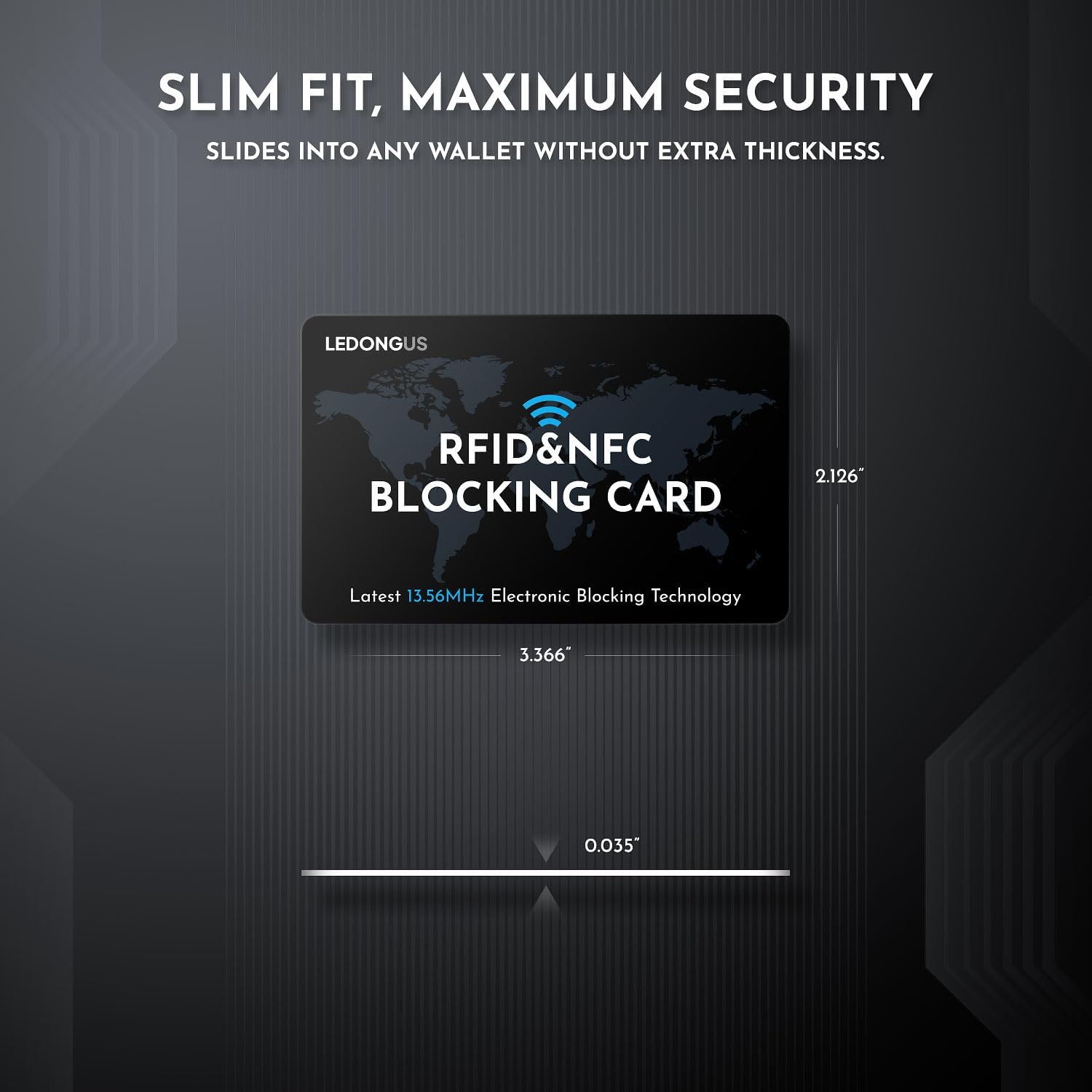 - Ultimate Wallet Protection Instantly protect your entire wallet from contactless RFID and NFC theft (electronic pickpocketing) with just one ultra-thin blocking card. No battery or setup needed – just slide it in.