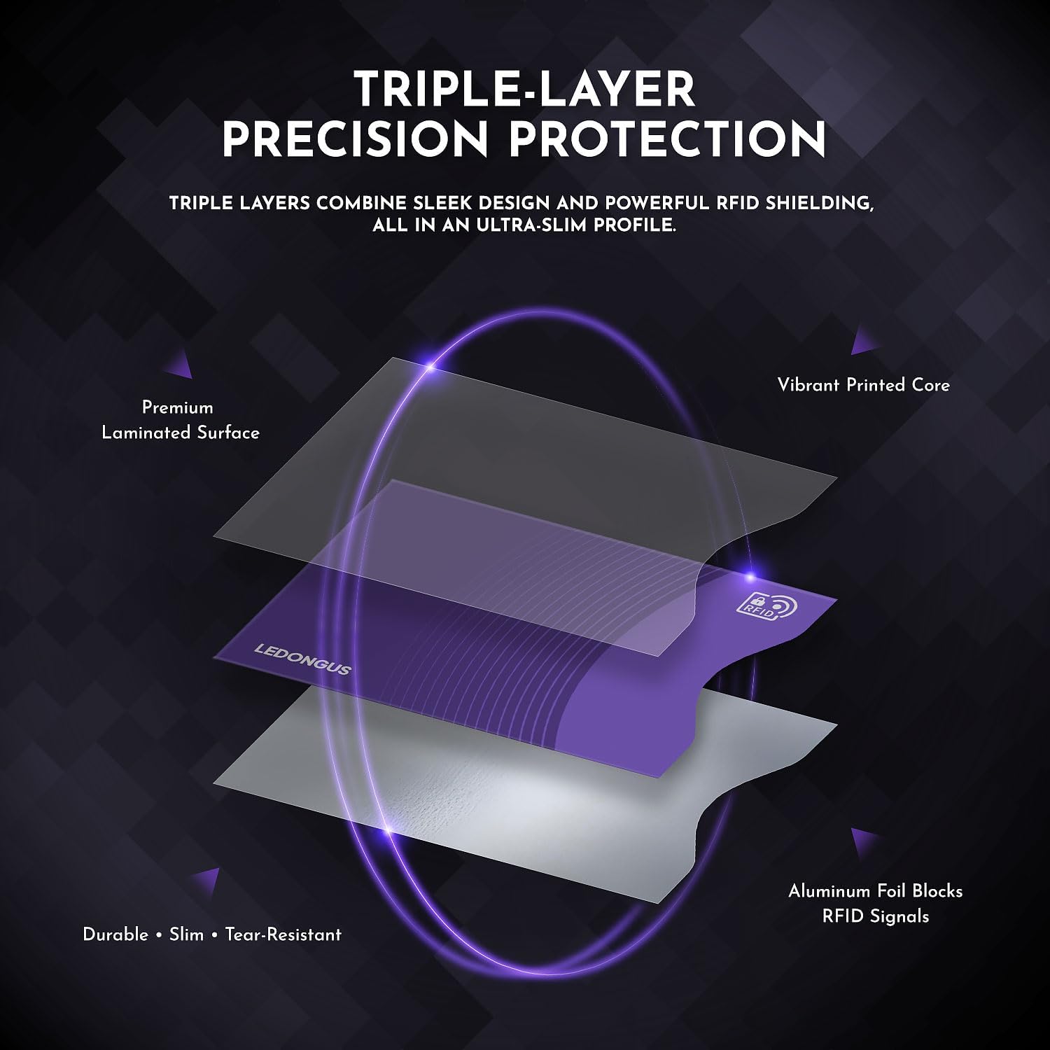- Advanced RFID/NFC Blocking Each sleeve is lined with metallic shielding material to prevent unauthorized data access and skimming.