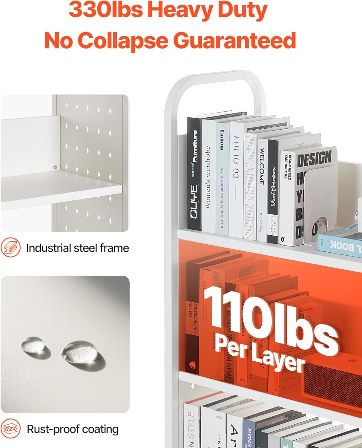 - Stable Load-bearing: Made of high-strength carbon steel, each layer of the rolling book cart supports 110 lbs (50 kg), with a total capacity of 330 lbs (150 kg). The rust-resistant coating ensures durability, ideal for heavy books or equipment