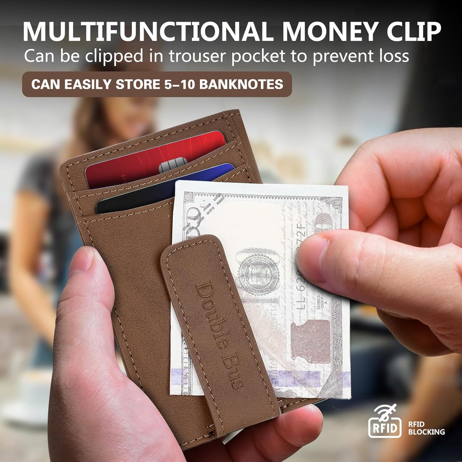 Slim Wallet for Men Credit Card Holder Wallet RFID Blocking Bifold Mens Slim Wallet,Thin Minimalist Front Pocket Mens Leather Wallets,Smart Security Mini Small Compact Wallet & Money Clip