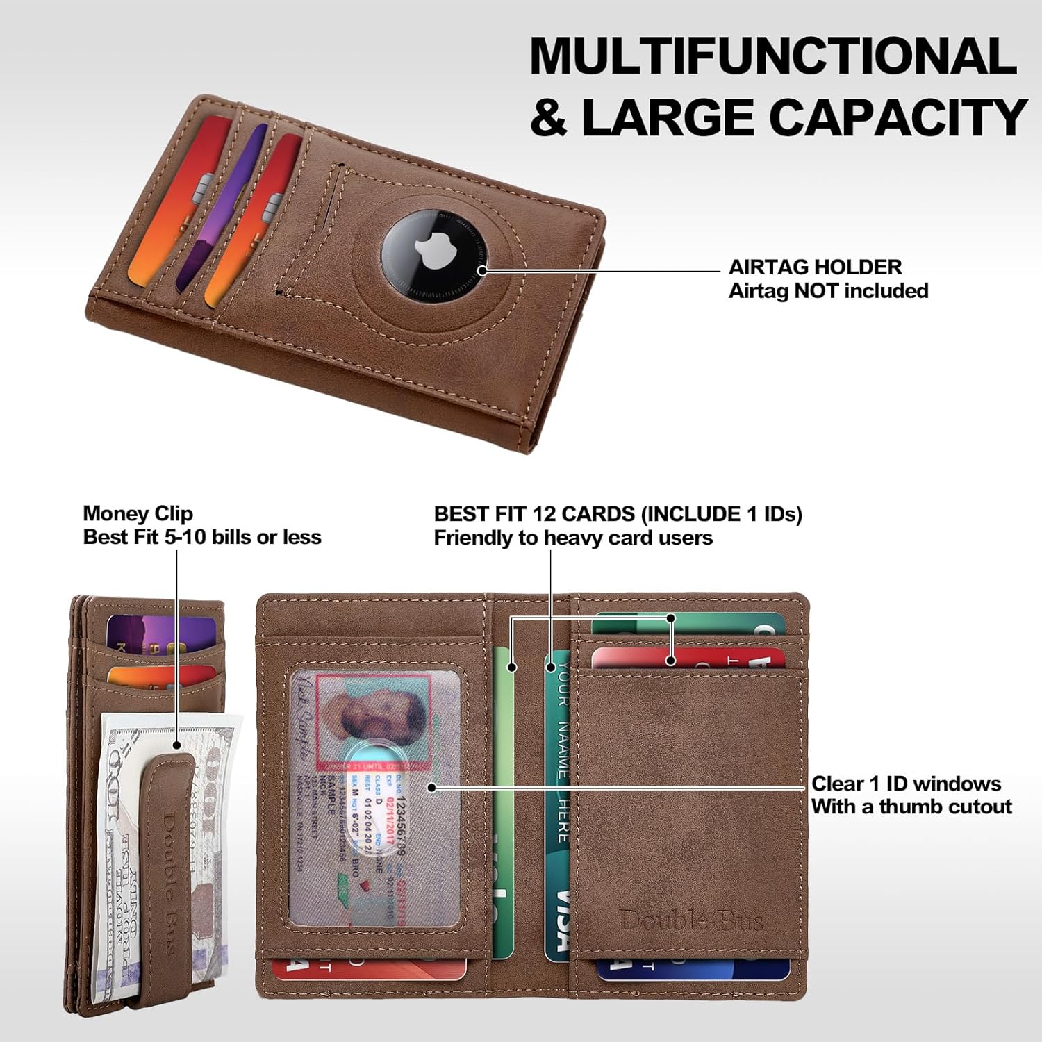 - Slim & Large Capacity:This slim bifold card wallet for men,measures 0.63x4.49x3 inches, 12 card slots including 1 ID windows,with money clip credit card wallet,5-10 bills for quick access when traveling,store/workplace. this slim front pocket wallet fits perfectly in your pocket,compact wallet perfect for daily carry