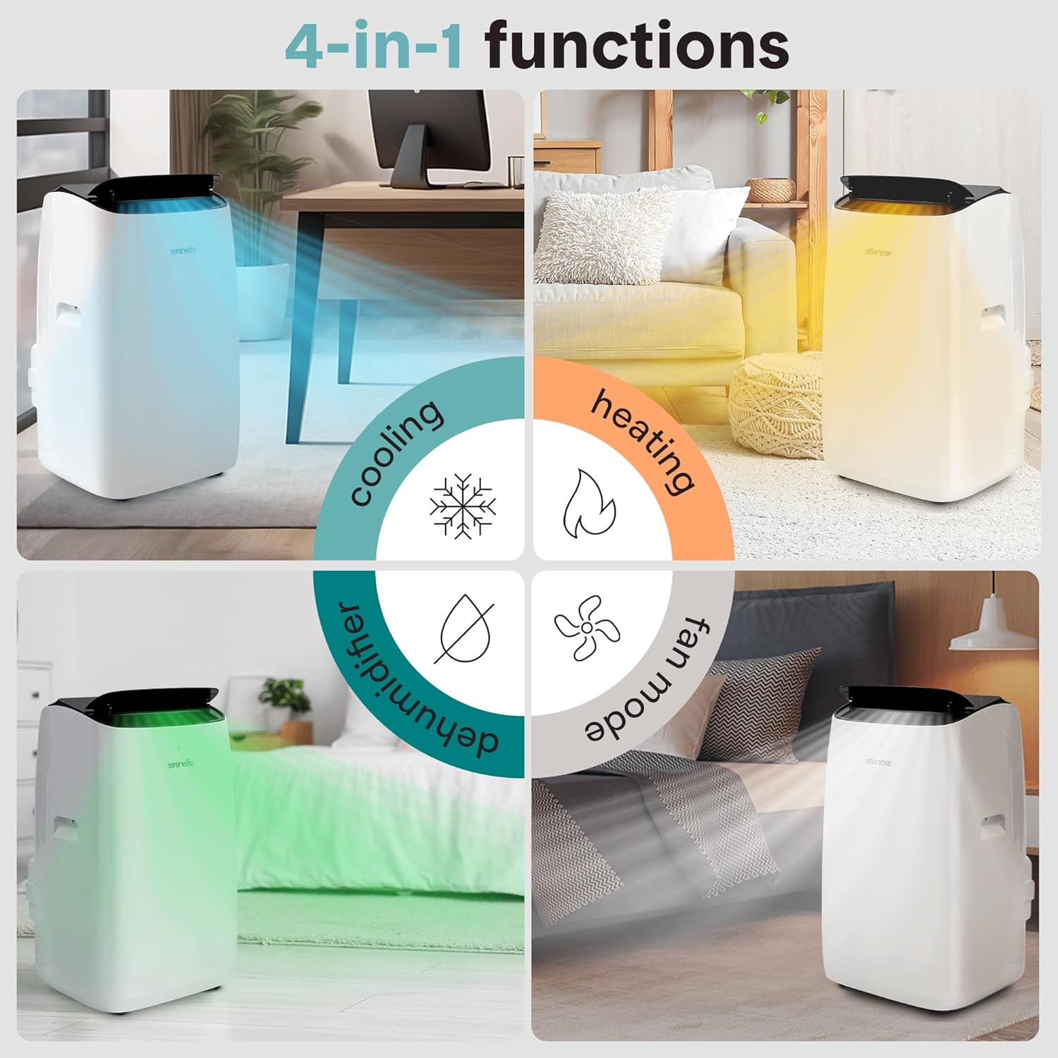 - ALL SEASON COMFORT β Ideal for summer and winter, this inverter portable air conditioner has cooling, heating, dehumidifying, and fan modes. Smart Wi-Fi control allows easy adjustments for year-round comfort while ensuring energy efficiency