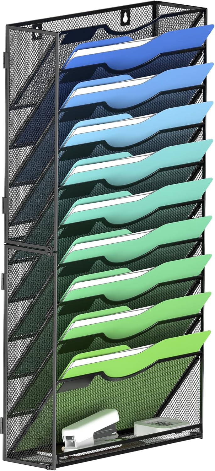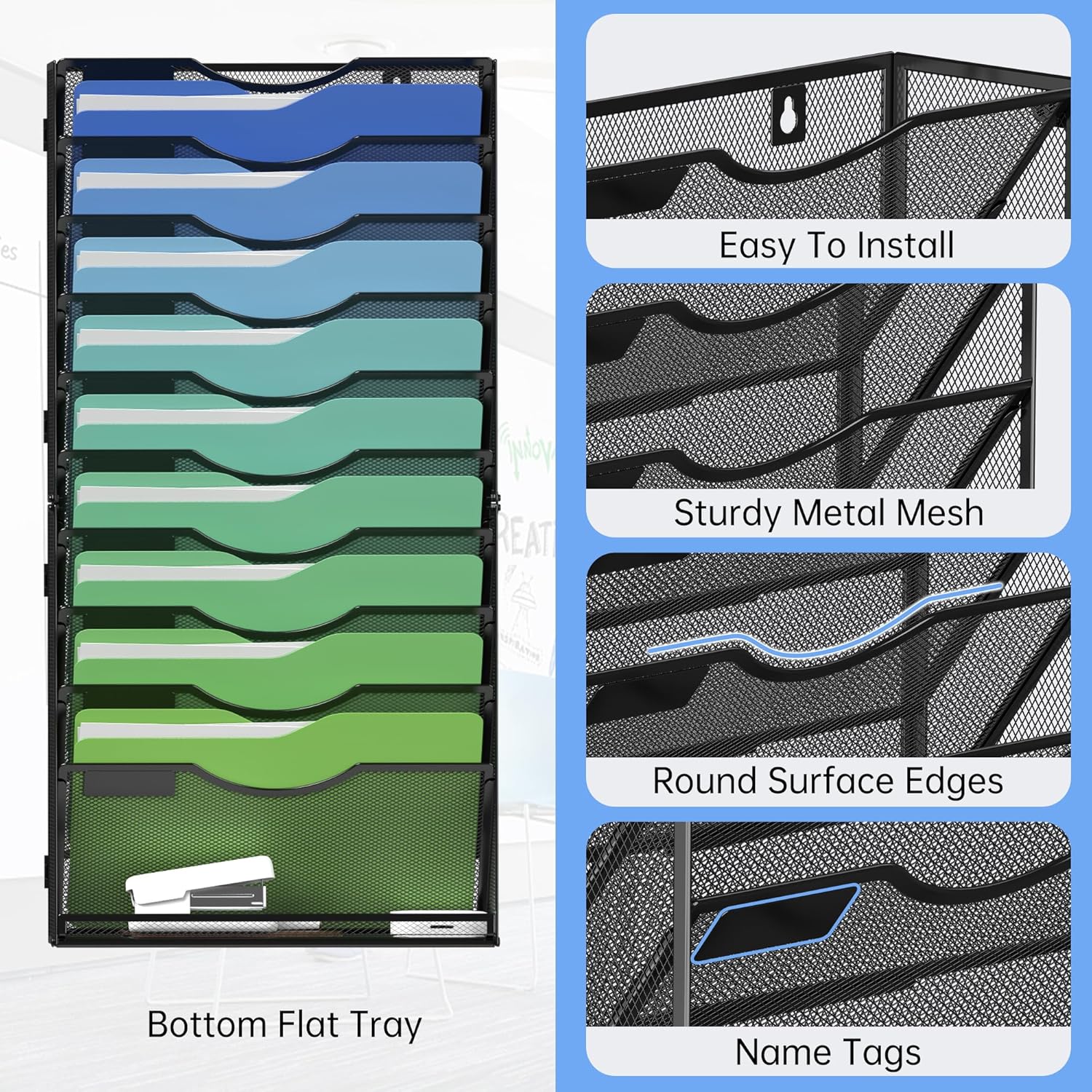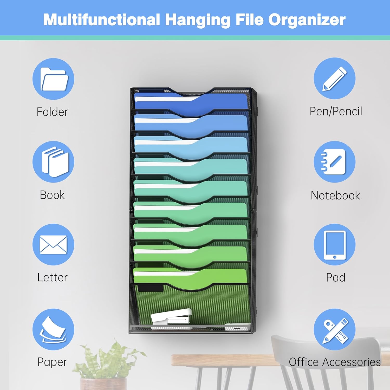 Kuntine.B Wall File Organizer Office Hanging Magazine Holder Wall File Organizer for Office Home (Black, 11 Tier)