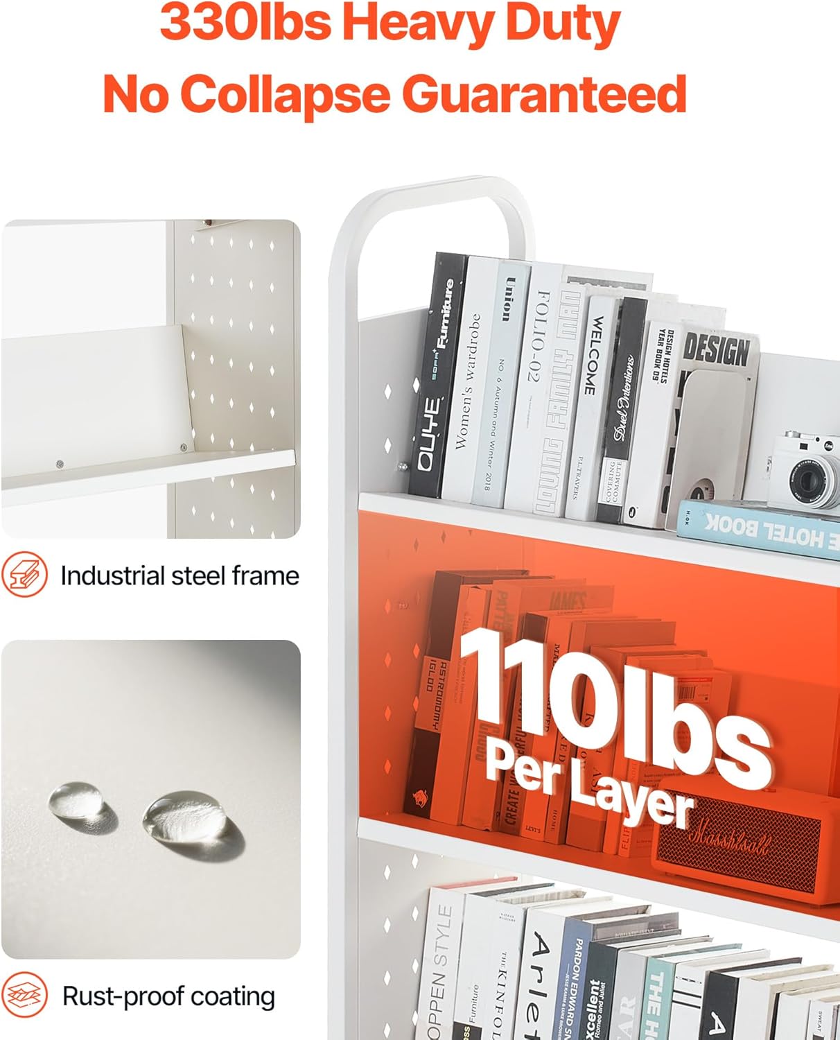 - Stable Load-bearing: Made of high-strength carbon steel, each layer of the rolling book cart supports 110 lbs (50 kg), with a total capacity of 330 lbs (150 kg). The rust-resistant coating ensures durability, ideal for heavy books or equipment