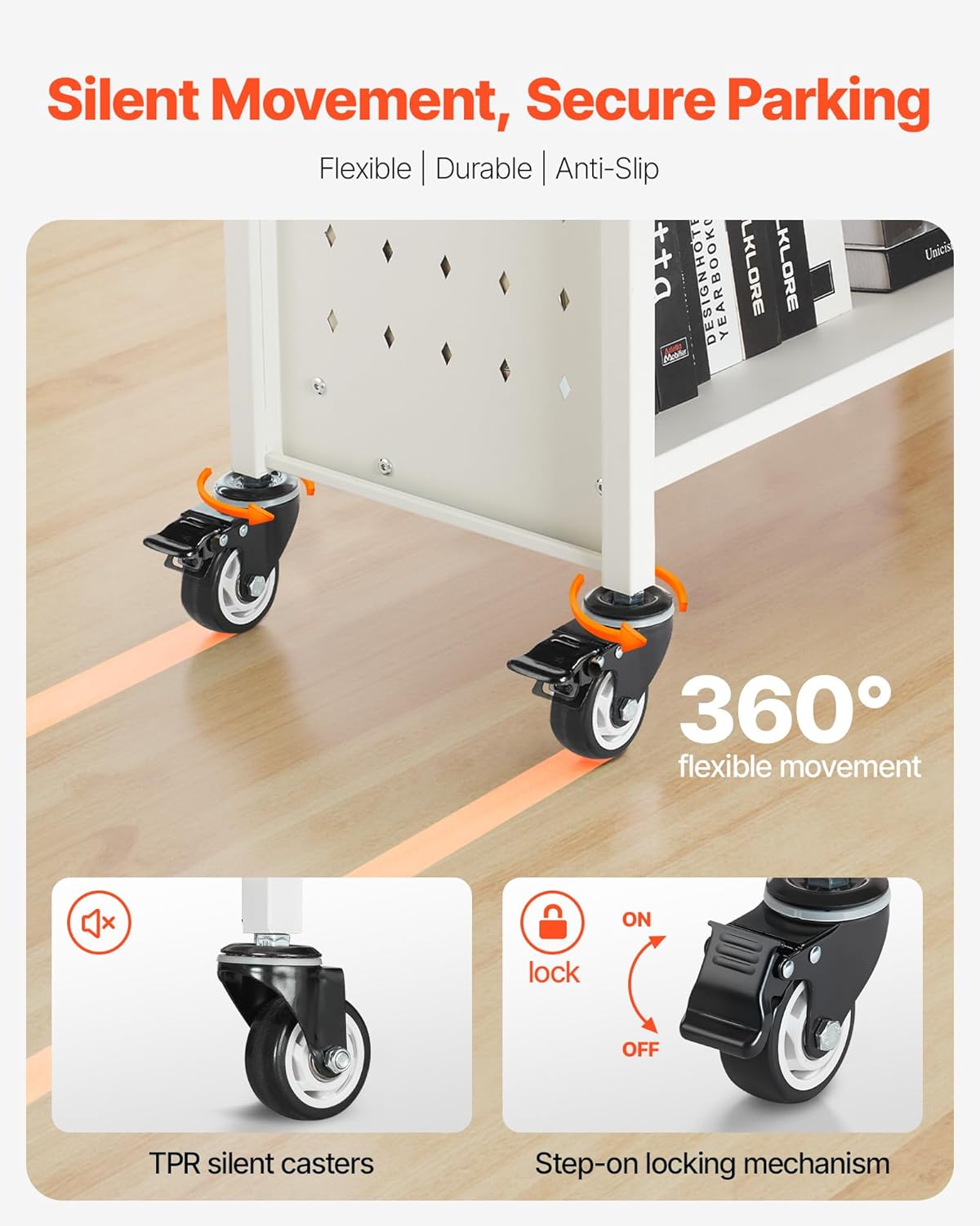 - Silent Movement: TPR silent swivel casters glide smoothly, and two have a locking feature for secure positioning. Move the book truck effortlessly across wood or tile floors without disturbing anyone—great for libraries or nighttime use