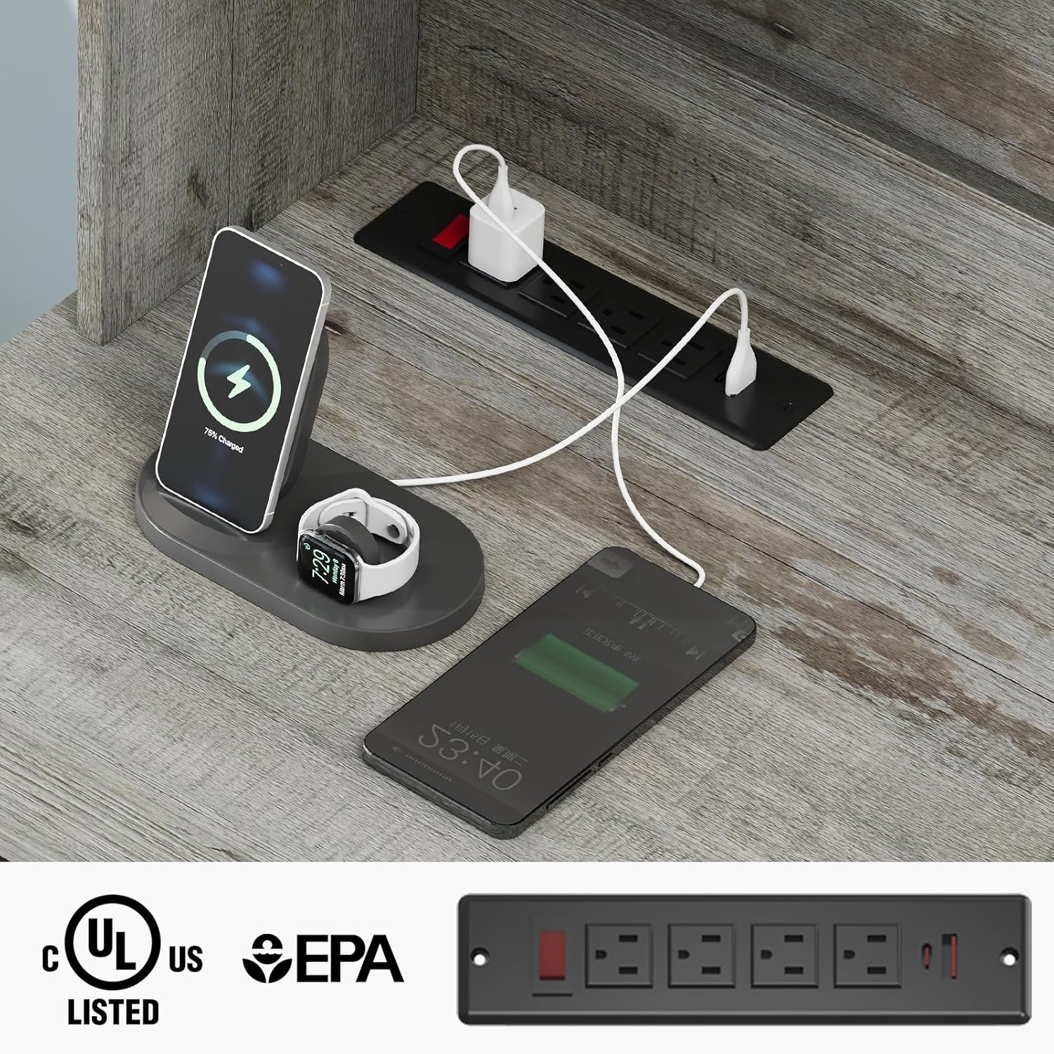 - 【Convenient Charging Station】Our charging hub has 4 outlets and 2 USB ports, enabling it to power up to 6 devices at the same time. Fitted with an on-off switch, it ensures safe electricity use and adds the convenience of one-button power-off, enhancing security. The power outlets can charge various devices like cell phones, tablets, and laptops.
