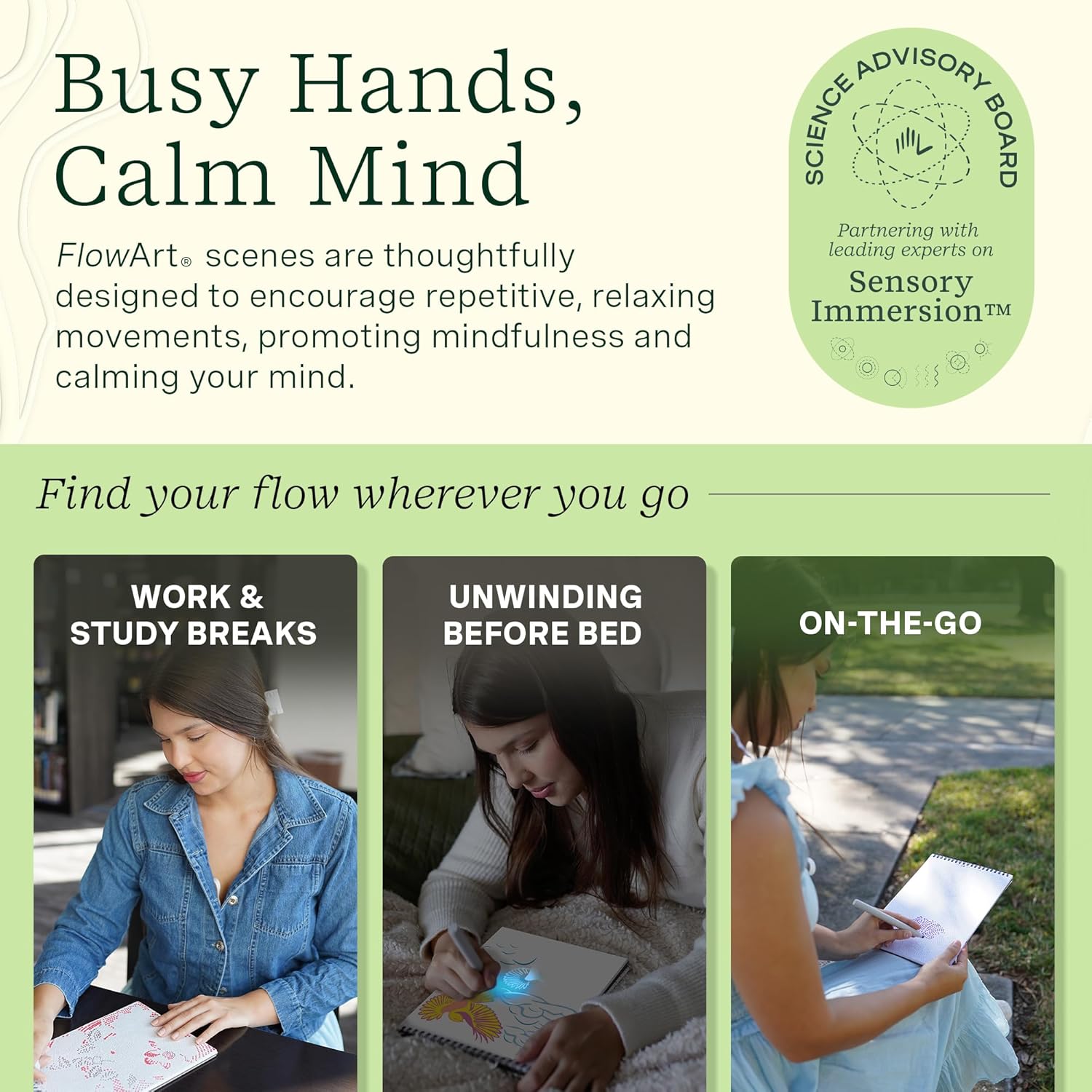 - Bonus FlowArt Activity Pad: Pack includes a bonus activity pad with 8 additional scenes for even more calm whenever you need it. Find your flow during work and study breaks, unwinding before bed, or well-being on-the-go.