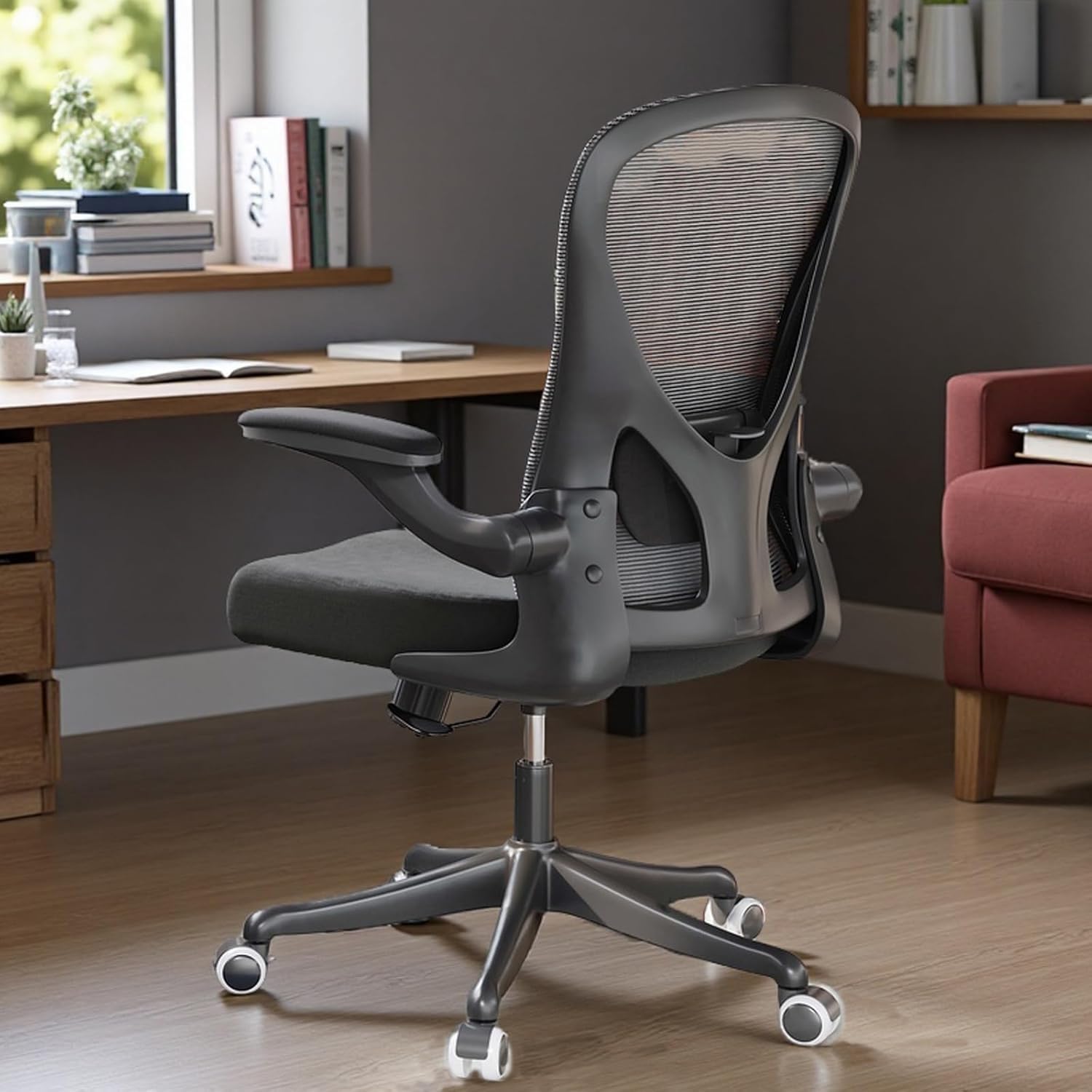 - 【Function and Design】Ergonomic design helps the backrest has prominent lumbar support to help you maintain a relaxed posture during long hours of work or study, comfortable mesh with back support points can fit the natural curvature of the spine, the armrests of the computer chair can provide comfortable support for the arms, and it can be flipped up when not in use, effectively saving space.