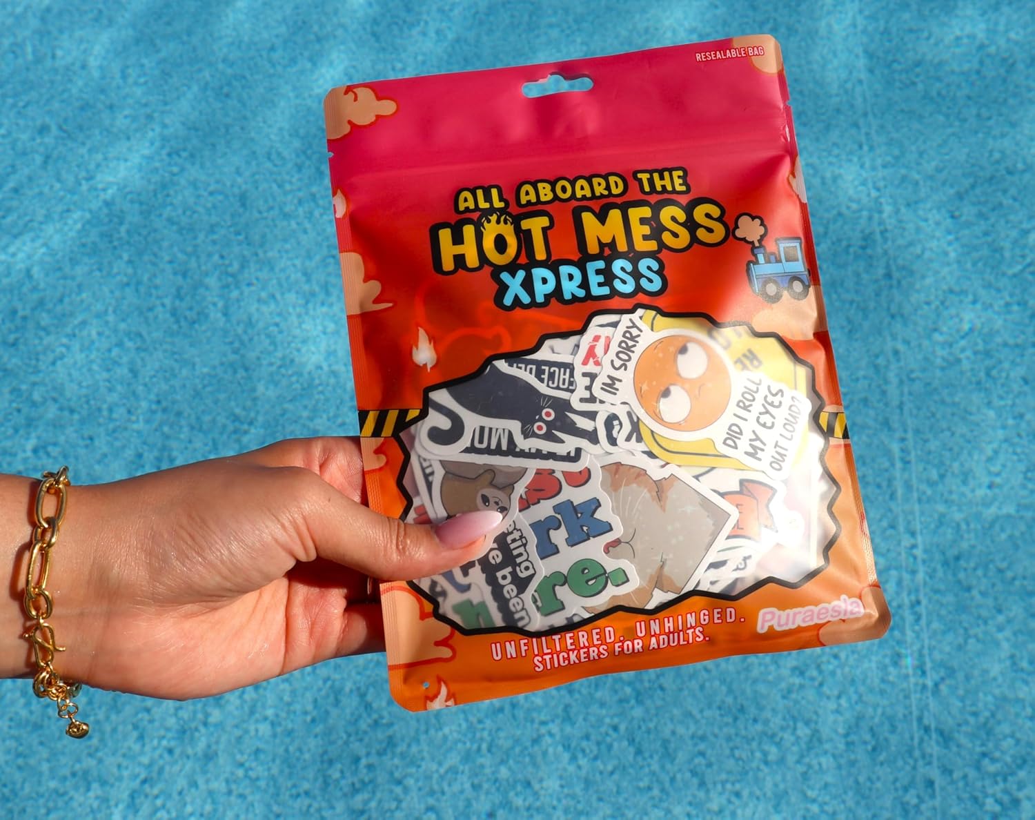 225PCS Funny Holographic Stickers for Adults, Waterproof Vinyl Pack Sarcastic Relatable Meme Decals for Laptop, Water Bottle, Phone, Kindle, Journal, Scrapbooking, No Repeats (225PC Hot Mess)
