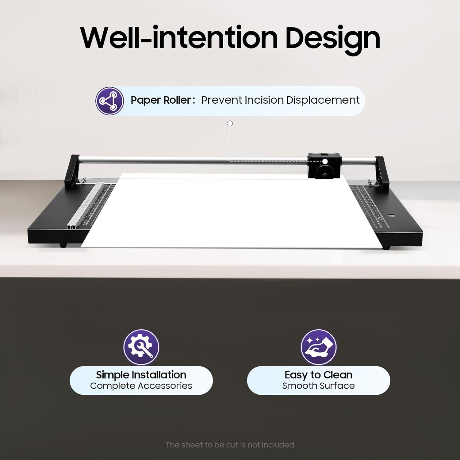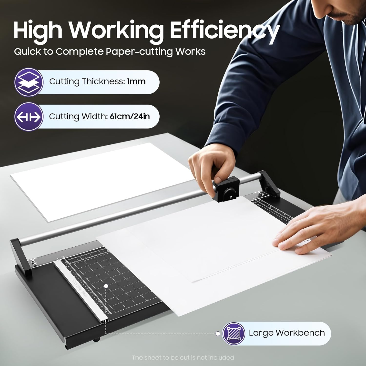 - Strong Applicability: It features a generous working table size of 31.29*14.17 inches with a cutting width of 24 inches, accommodating a wide range of paper sizes up to 1mm thick. In addition, the 0-60° angle scale allows you to achieve multi-angle cutting needs, making it more flexible to use.