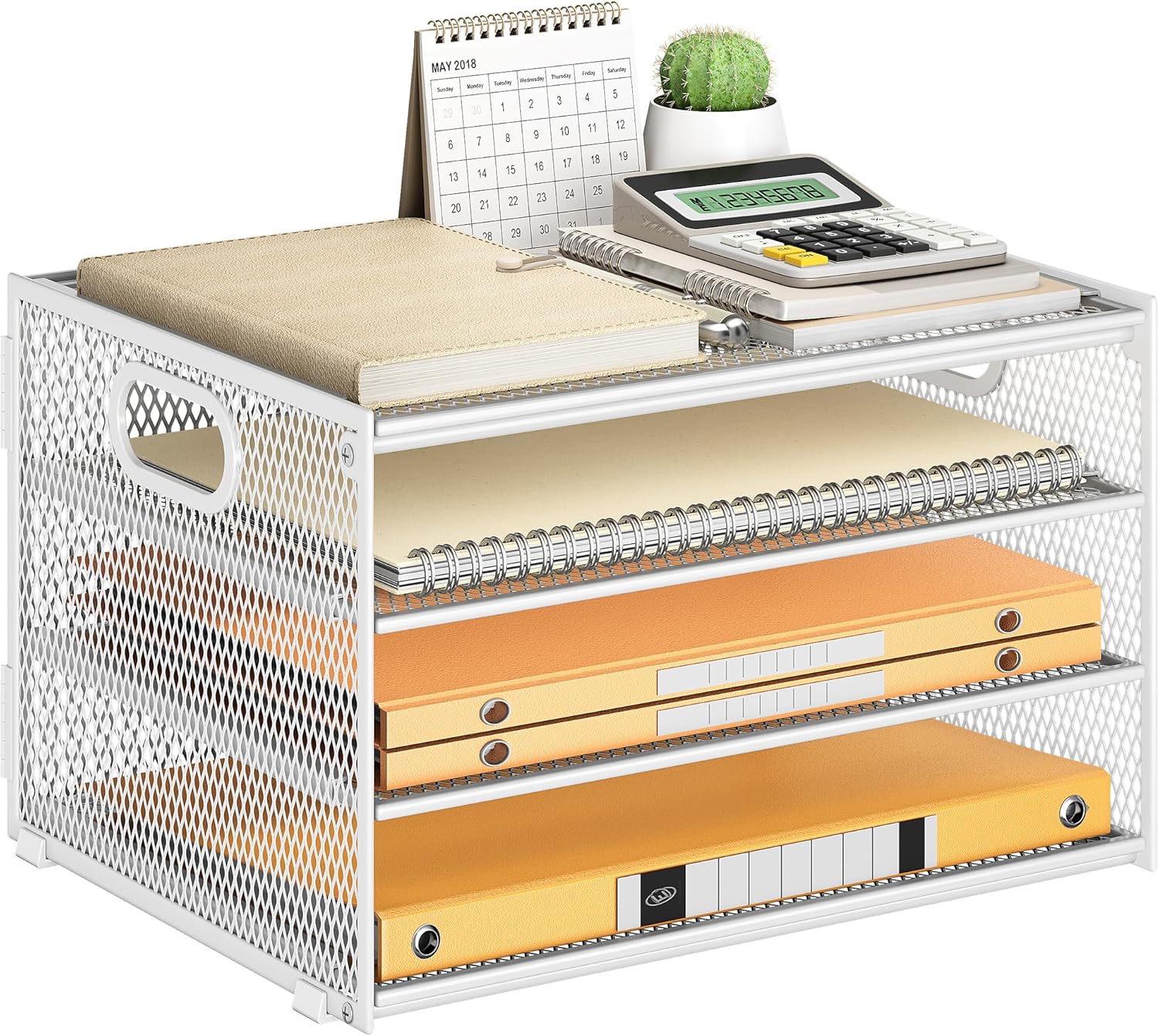 - Paper Organizer Function and Usage: The mesh desktop file organizer can hold various items including paper, folders, books, bills, notebooks, etc. The open design enables quick identification and access to contents, helping to declutter and organize the desk